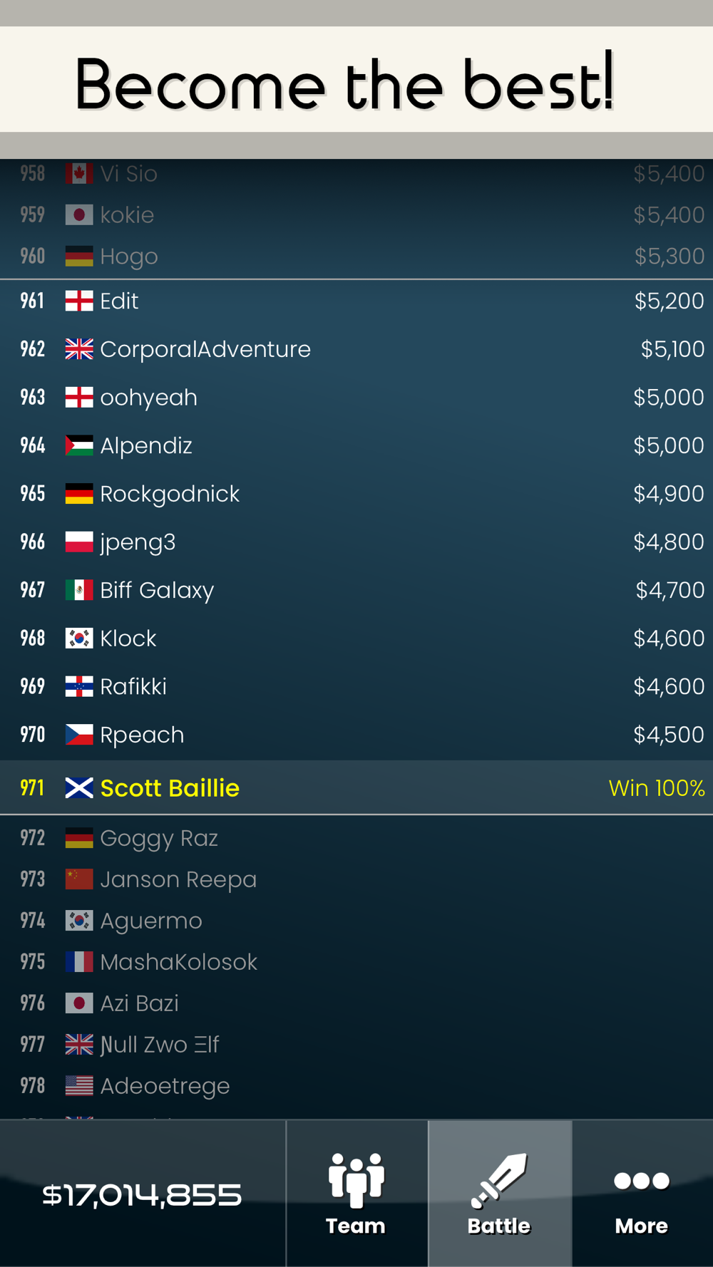 • Battle other teams to earn cash!