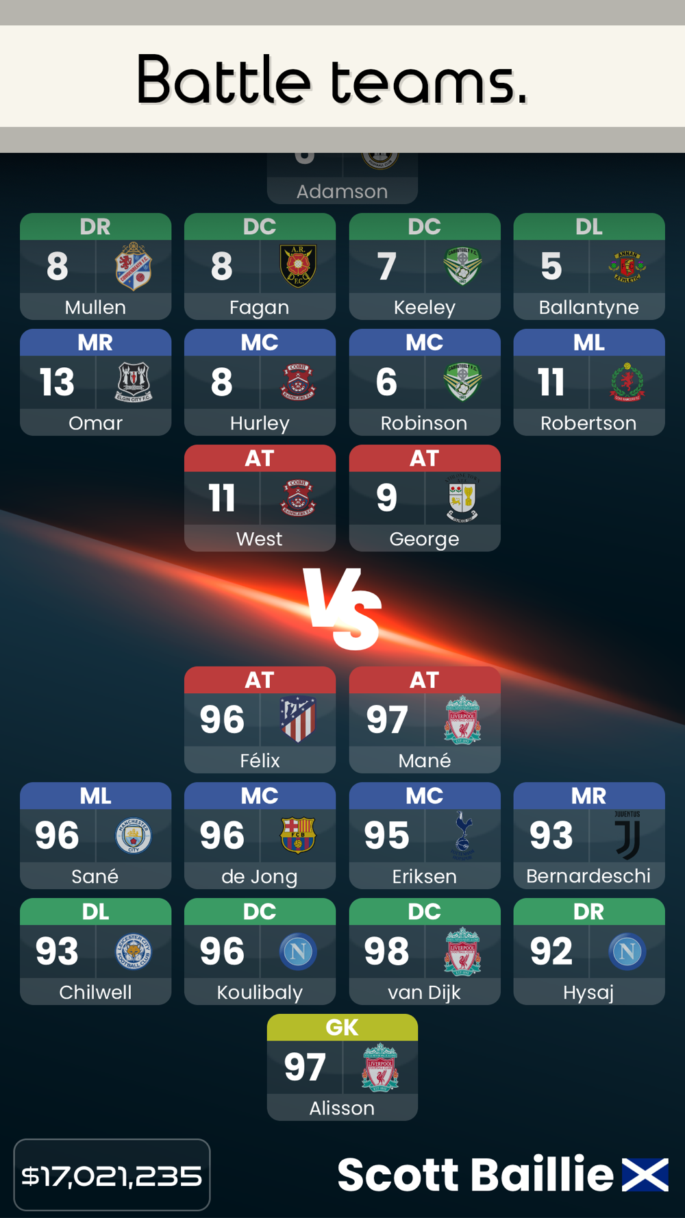 Fantasy Footy Battle is a football card game which lets you battle other fantasy teams!