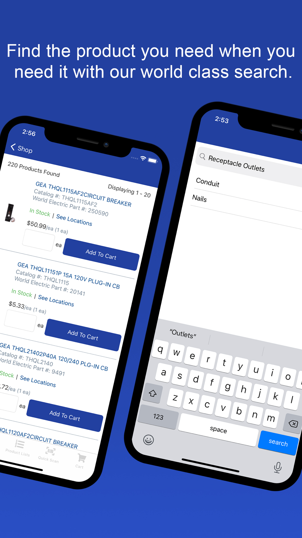 Use our app to view product information, manage your account and place orders anywhere your job takes you.
