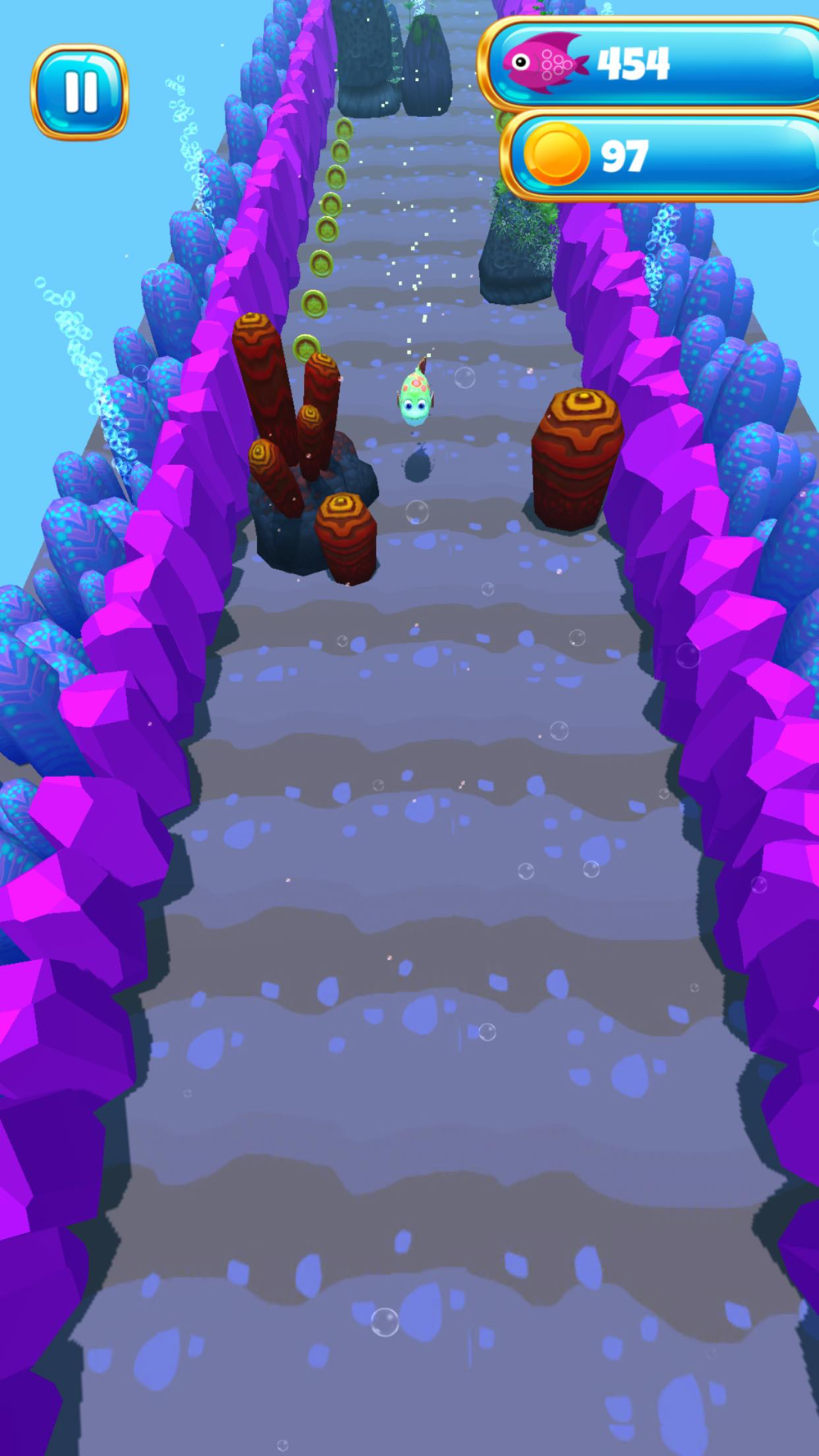 A new style of running game! This game features a fish who is swimming through a lot of coral & obstacles. Swipe from side to side or jump the objects to keep the fish going. Hit any object & you'll need to start over. Unlock different fish with coins collected on your way. Your movements need to be performed backwards because you view of the fish will be from the front. Keep the fish going!