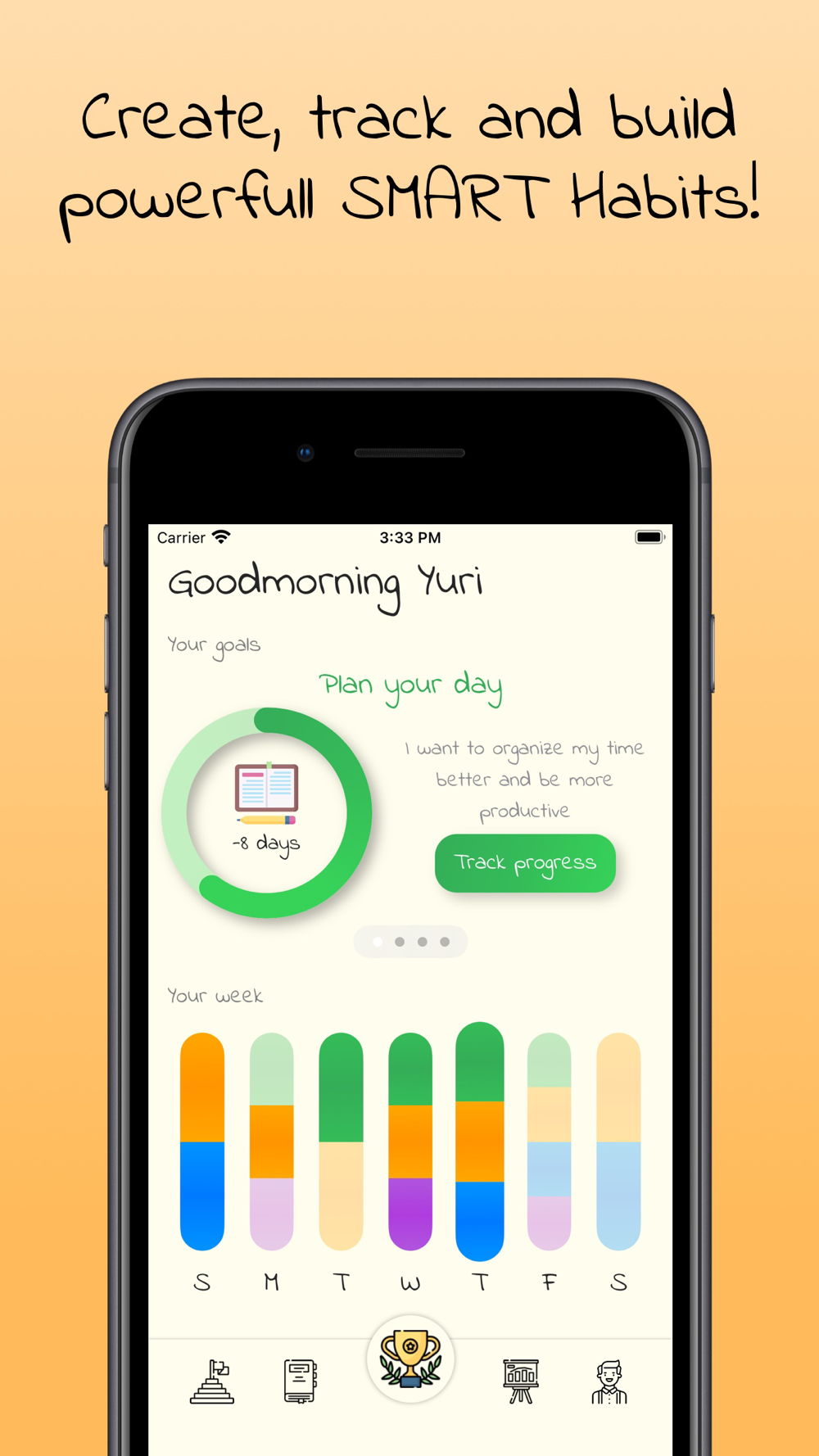 TimeToGoal is the first app that will help you create not just standard habits, but SMART habits, in order to improve the quality of your life. It will help you design a habit in the right way and support you all over the journey until you'll be able to sustain it without difficulties.