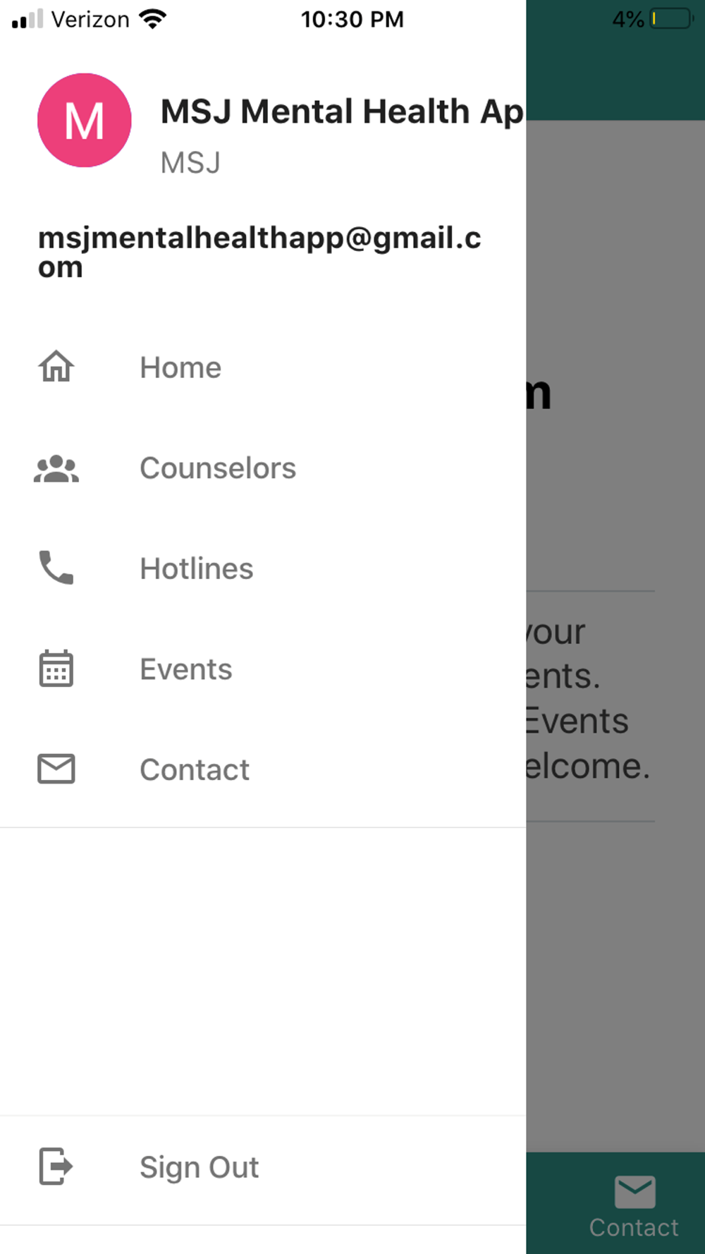 App also provides information about any upcoming MHC Events and students can use the App functionality to add those events to their Calendar.