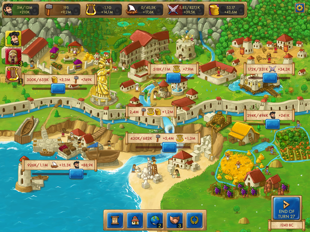 Your task is to lead a small village at the dawn of Aegean civilization to its glorious future as one of the most powerful cities - Athens, Corinth, or Sparta.