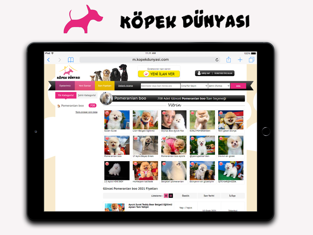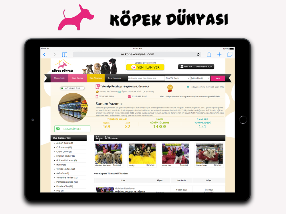 Cins yavru köpekler üzerine Petshop ve profesyonel lisanslı üreticilerin ilanları da yer alıyor.