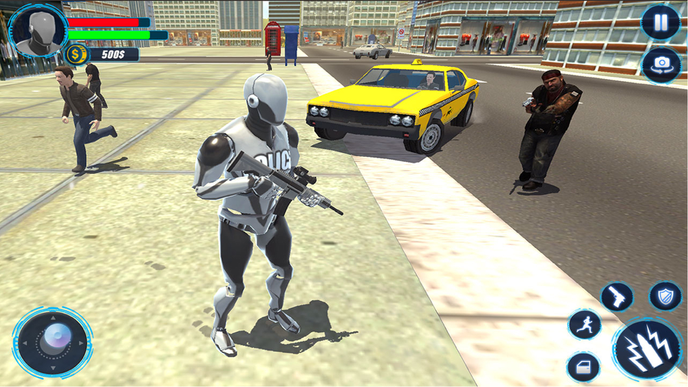 Police Robot Cop Game and robot fps shooting game is one of the best and multi-story robot superhero games. Gangster and crime Vegas have covered the entire city and starting the negative activities and all the citizen feeling un secure. So you have best chance to become real robot superhero. And to kill the fictional antagonist and real gangster mafia of Vegas crime city to control the mad city crime in best robot games. this robot US police fighting game is freely available on app store. So don’t wait any more and get it download our best robot war games and speed superhero games and enjoy it.