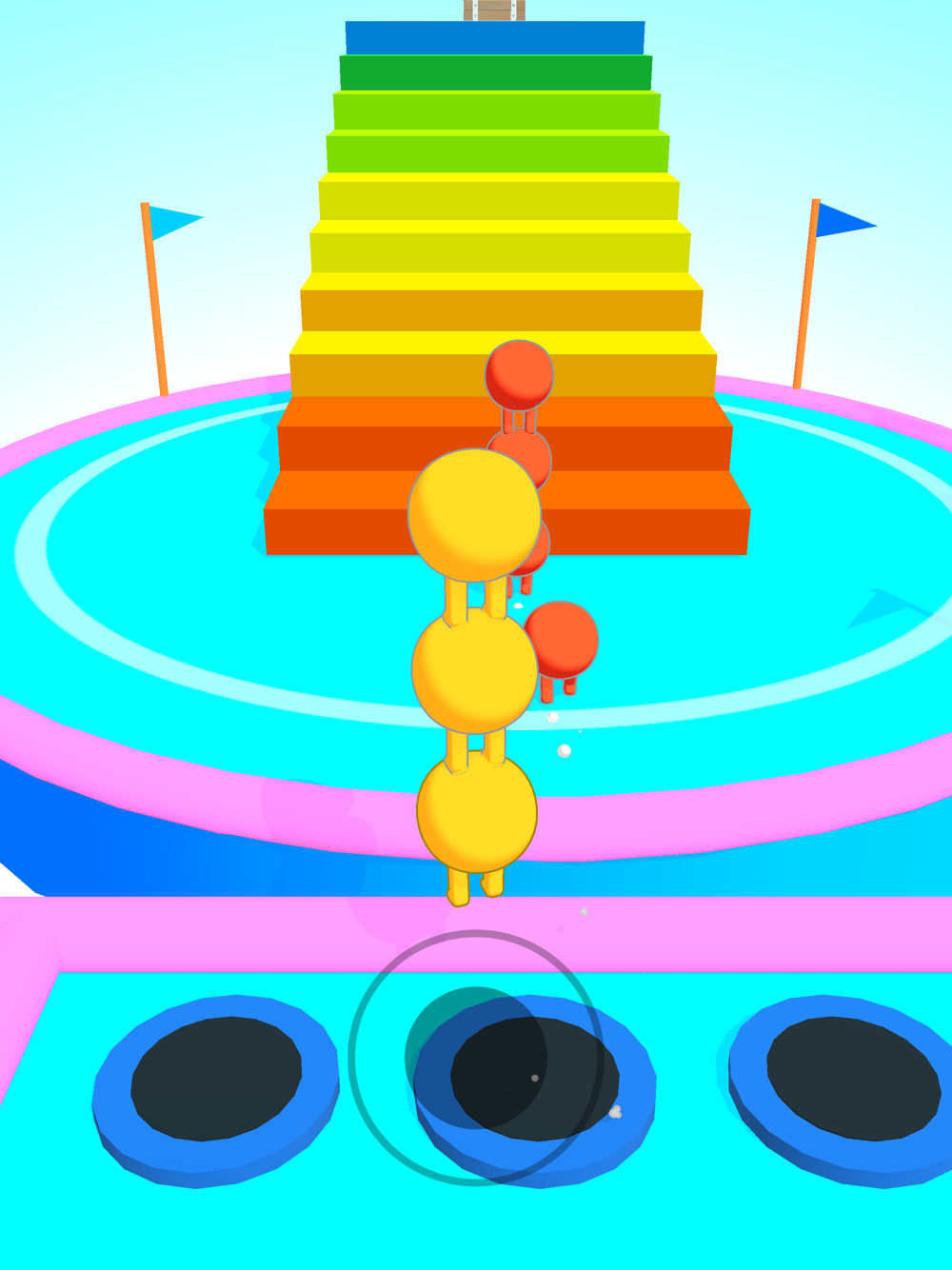 Race and try to stack as much guys as you can! The highest tower to reach the end wins!