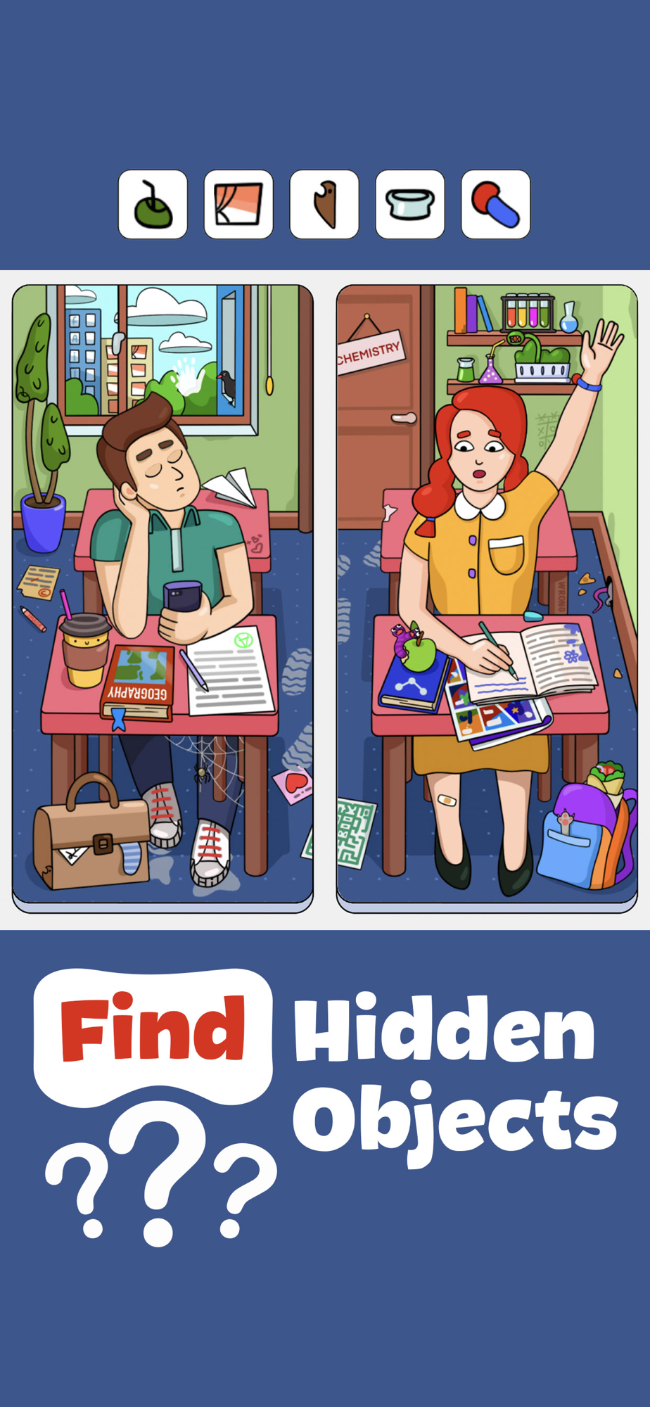 Our game is a new puzzle game not only to enjoy but train your brain! Find hidden items, explore the pictures, and improve your concentration as well as detective skills.