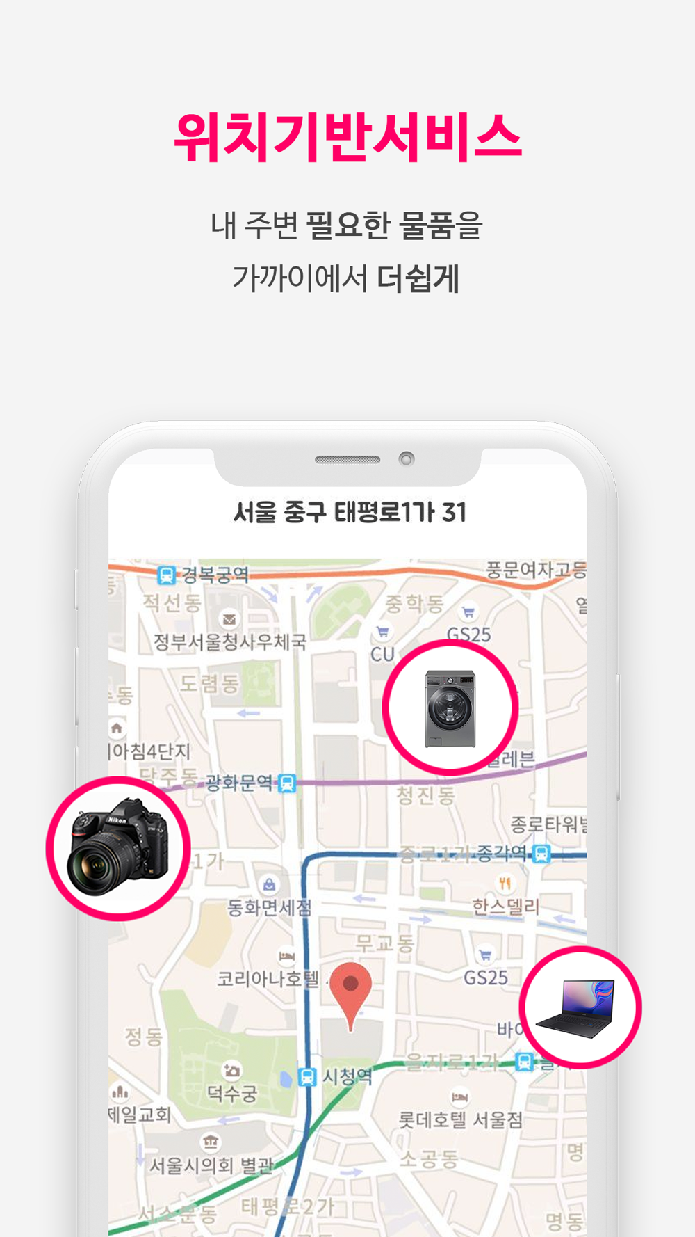 위치기반 서비스로 주변에서 쉽게 대여가 가능합니다.