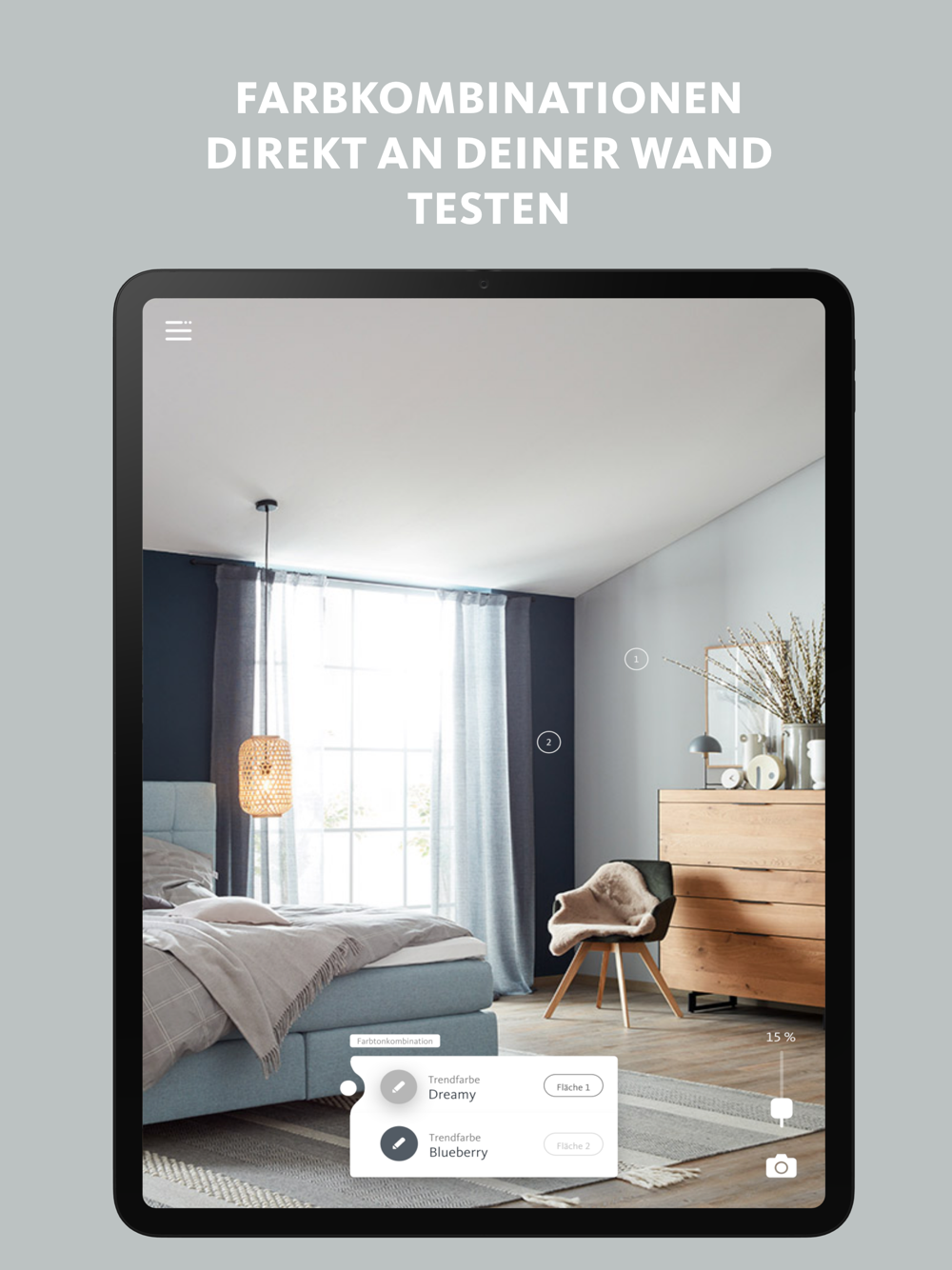 - Neues Feature Multi-Select: Färbe eine zweite Wand oder die Decke in einem anderen Farbton ein.