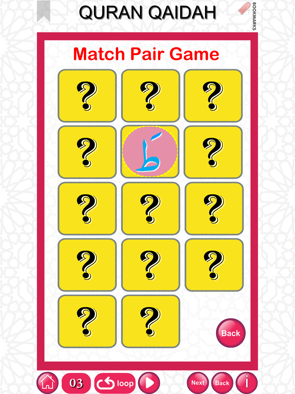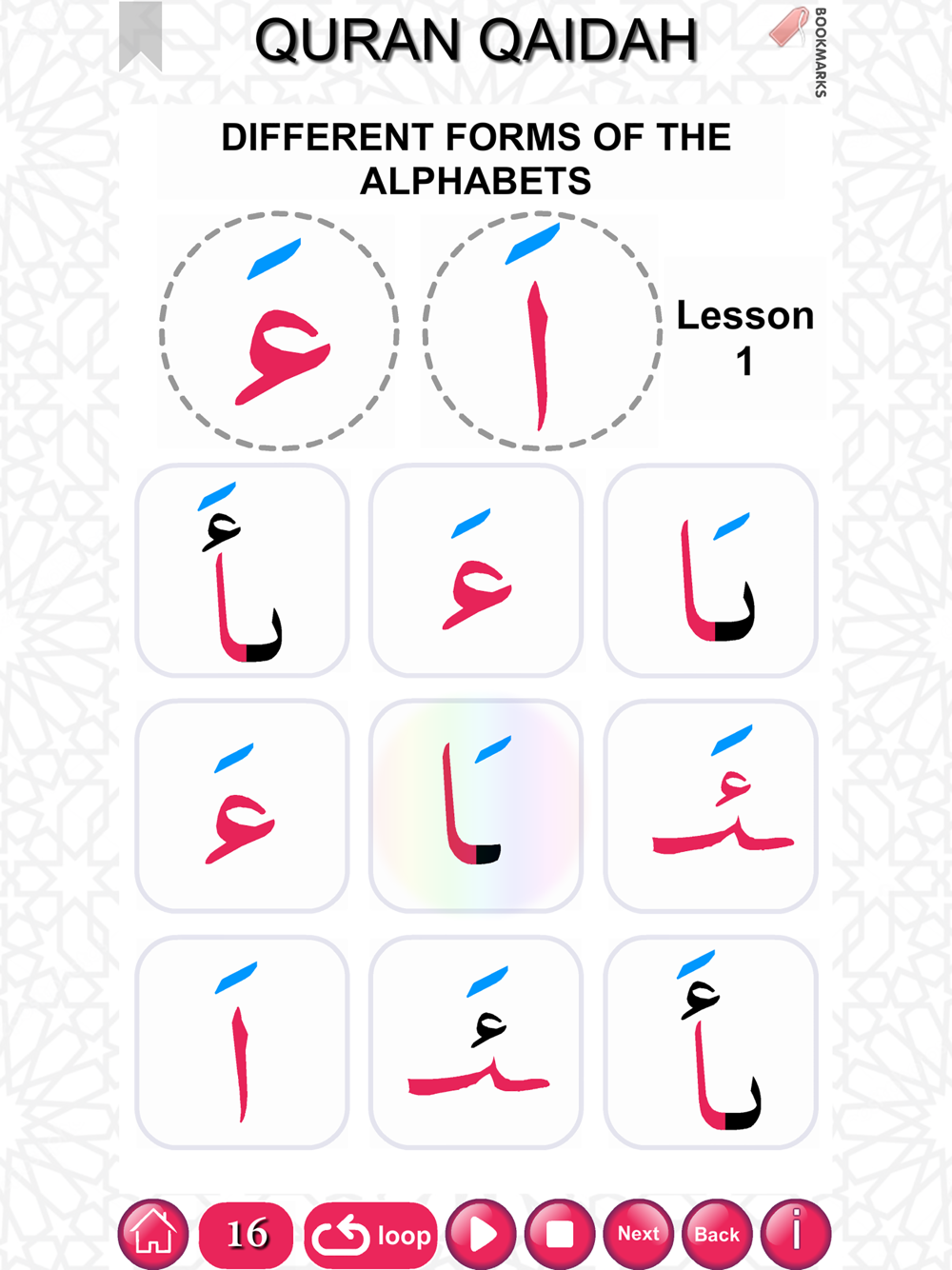 The goal of this series of apps is to allow the child to learn independently without adult intervention.The lessons are sequenced in a cumulative manner that constantly consolidates previously learned lessons. Words and examples used are from the Holy Quran, giving children an early introduction to Quran vocabulary.