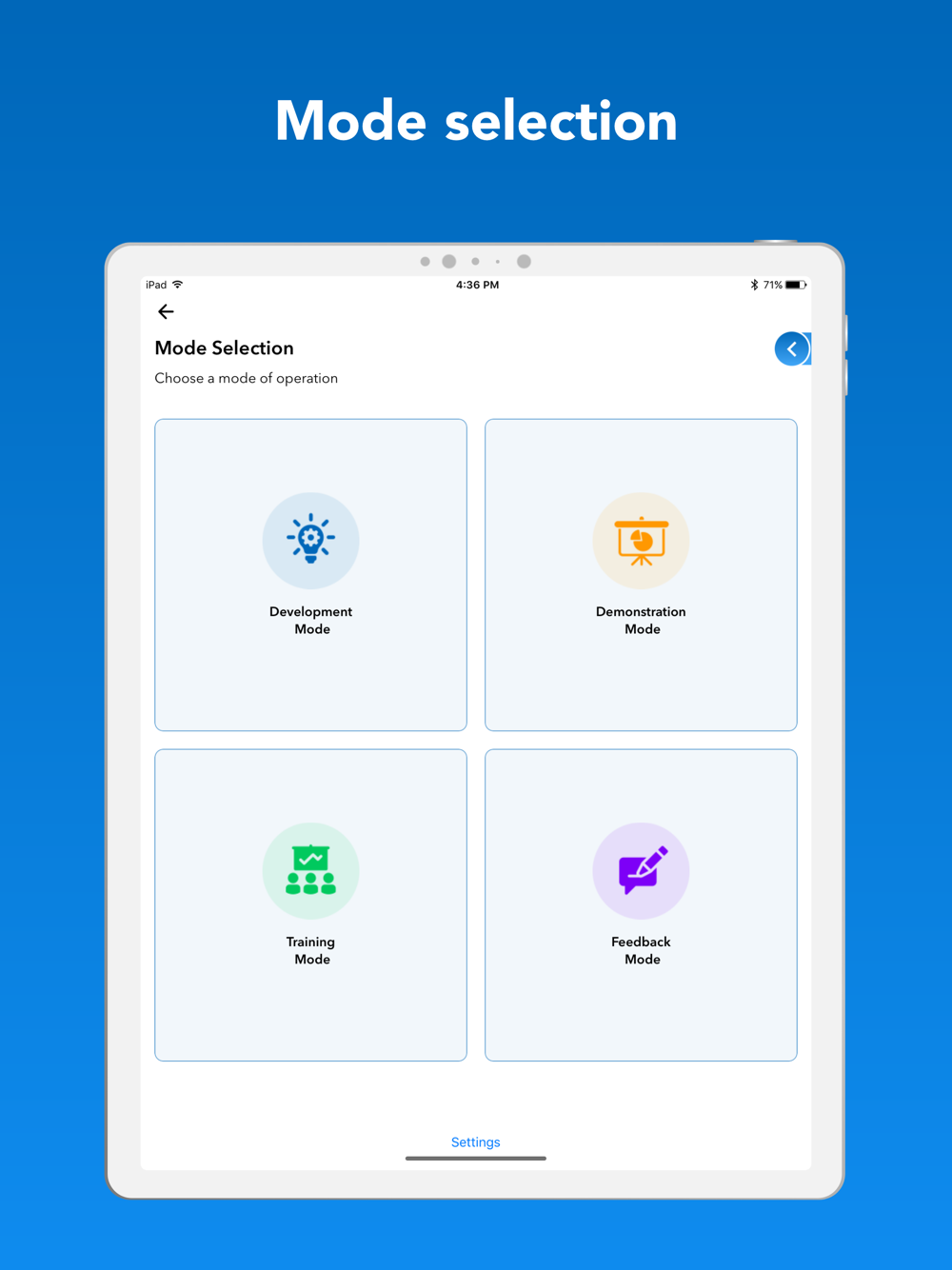 The ADI Stitch App provides the user interface to the Analog Devices motion sensing garment. The app pairs to the garment through Bluetooth LE.