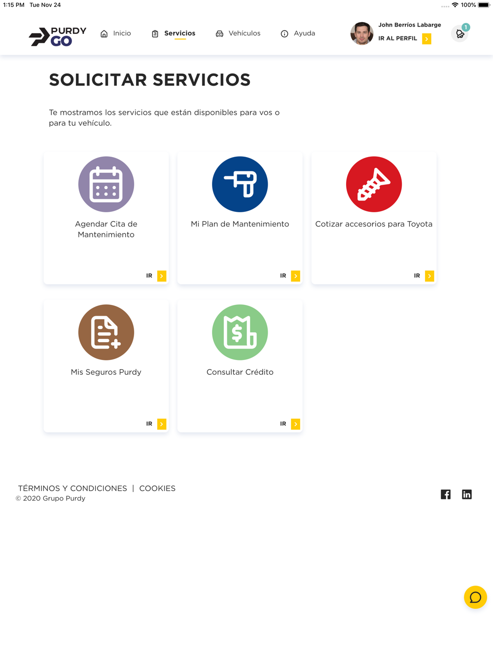 Purdy Go es una plataforma digital para clientes de Grupo Purdy donde podrás acceder al historia de tu vehículo, comunicarte de forma directa con nosotros y realizar todo tipo de consultas y/o solicitudes, como agendar una cita de taller para mantenimiento o cambio de aceite.