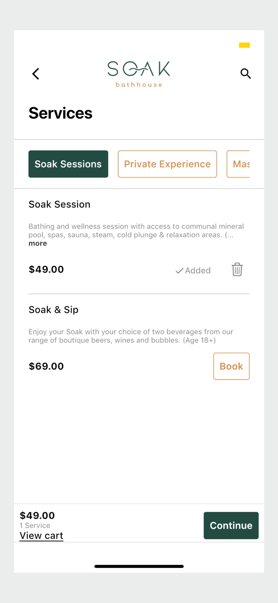 Make wellness even easier with our intuitive Soak Bathhouse app. From booking your experience, to digital check-in, secure purchasing, and providing easy feedback, our powerful app will help streamline and enhance your bathhouse visit. Members can also manage their membership, redeem credits, and keep track of their bathhouse appointment history.