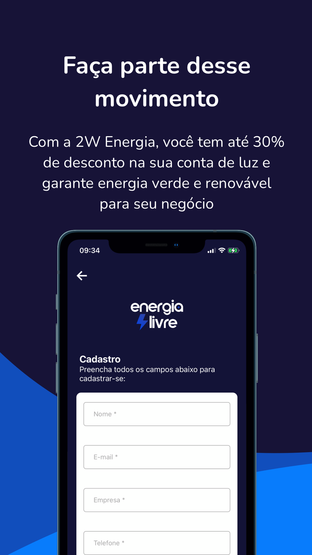 Bem-vindos, clientes Energia Livre! Em nosso app, você pode: