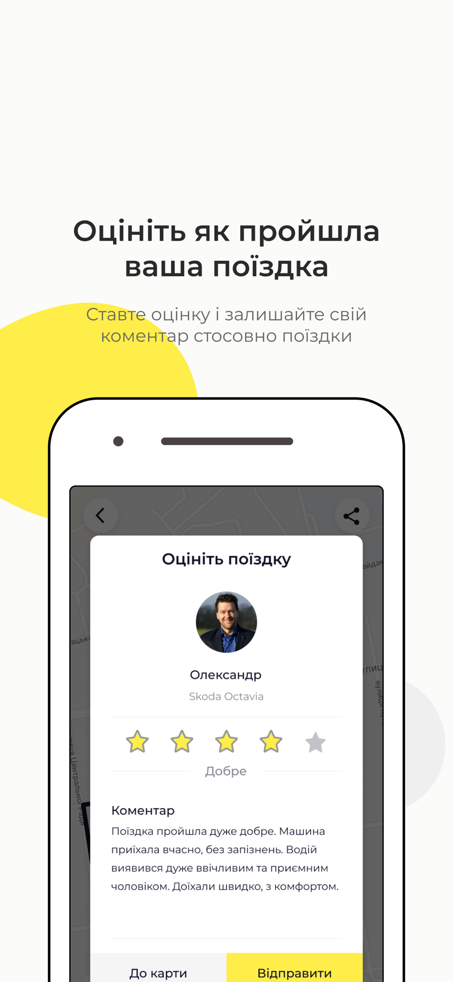 - оцінка водія та поїздки - від вас залежить персональний рейтинг водія.