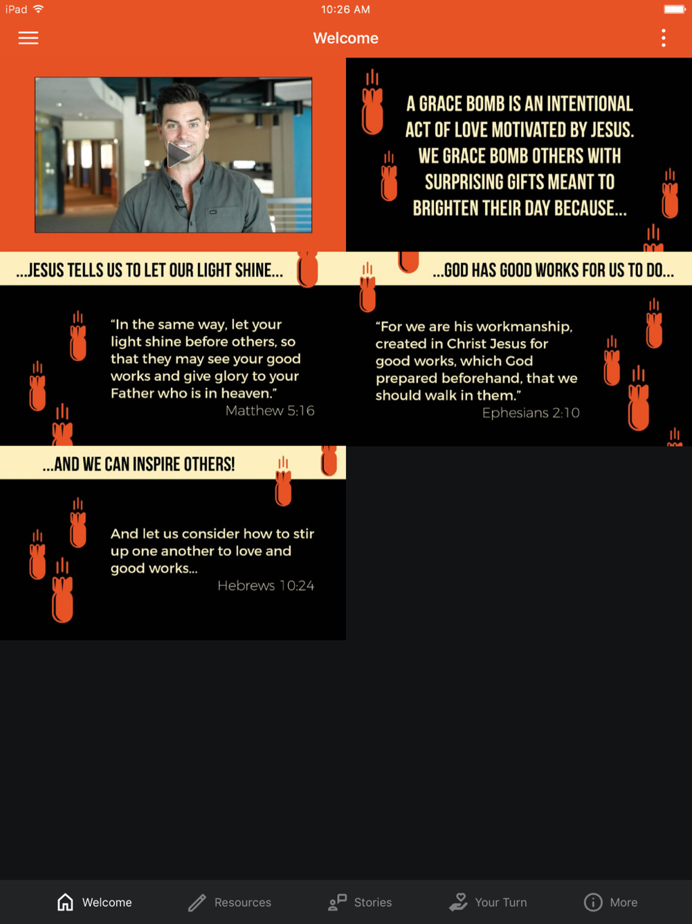 The Grace Bomb app will help you get the most out of the Grace Bomb sermon series at your church. With this app you can: