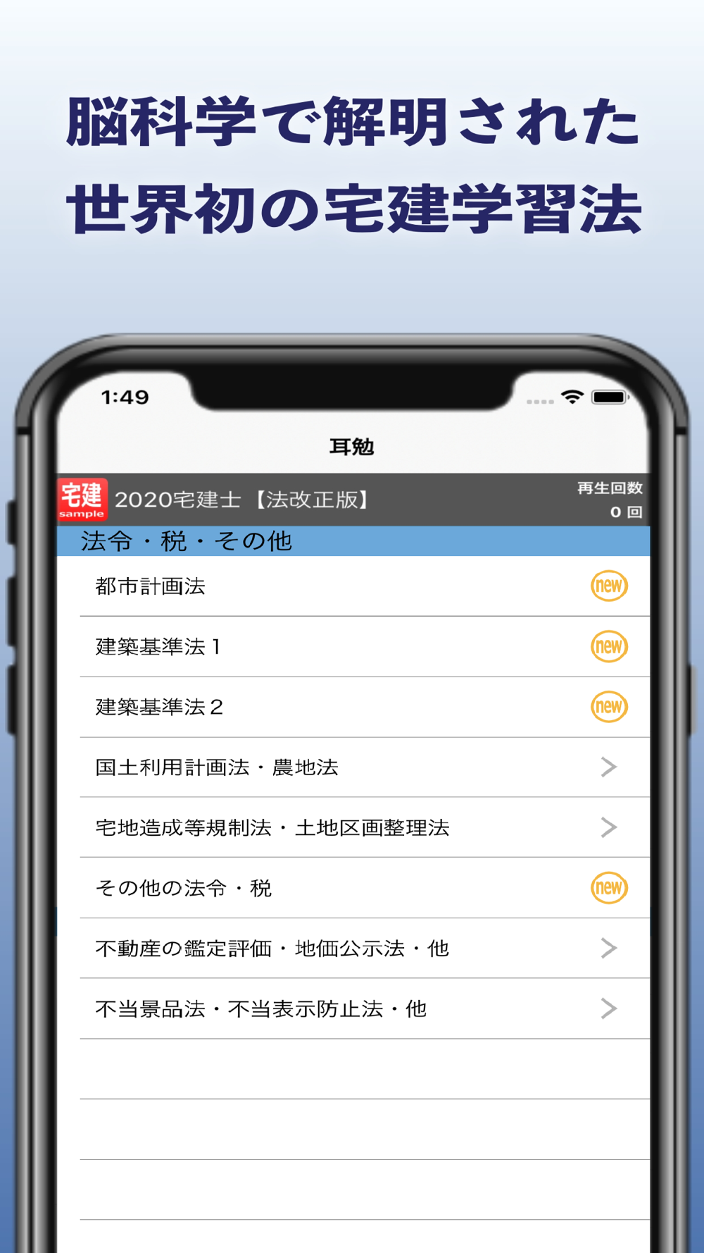 「法令上の制限」に8問、「税・その他」で8問が振り分けられています。ここでは両方で10点は取りたいところです。「法令上の制限」も「税・その他」は暗記が出来ていれば答えらるところです。社会人の方にとってこの暗記は時間のない中でやらなくてはなりません。たいがいの人がテキストを理解するのが精一杯で、覚え込むまでには時間が足りないのが現状です。そこで、三重録音を聴くだけで、短い時間に集中して、短い期間に暗記ができるように『耳勉』を開発しました。特に再受験の方には強い味方となります。また初受験の方には、学習をサポートする頼もしいツールとなります。