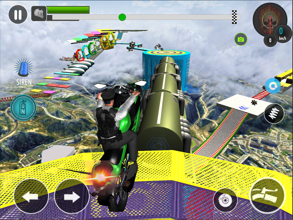 Do you like to become a ramp bike Police stunt games? Enjoy the thrilling stunts on extremely daring ramps. Get your stamina boost up to go on airborne ramps. Stand out as best police bike rider to perform crazy stunts in police bike stunts game. Time to become impossible ramp hero in bike stunts 3D. Be the crazier on impossible tracks for unique & adventurous stunts.