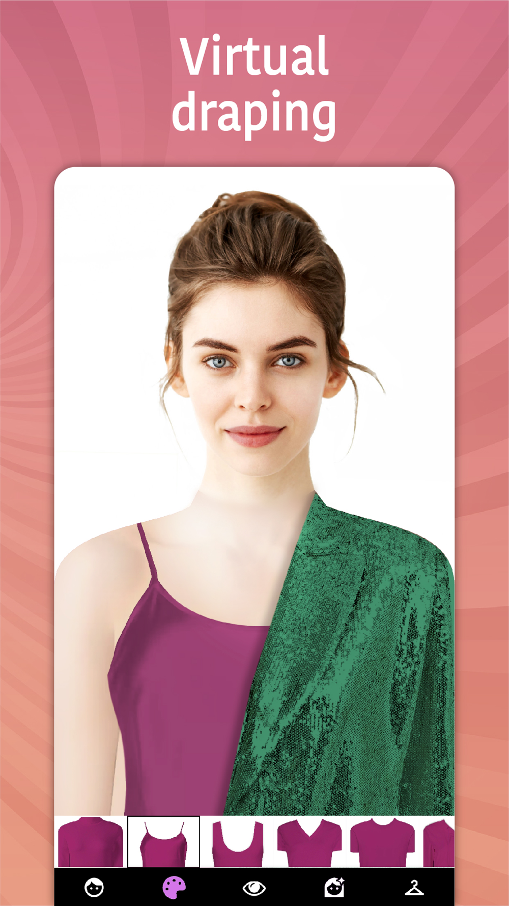 - use a virtual fitting room to try on looks from online stores before the purchase;