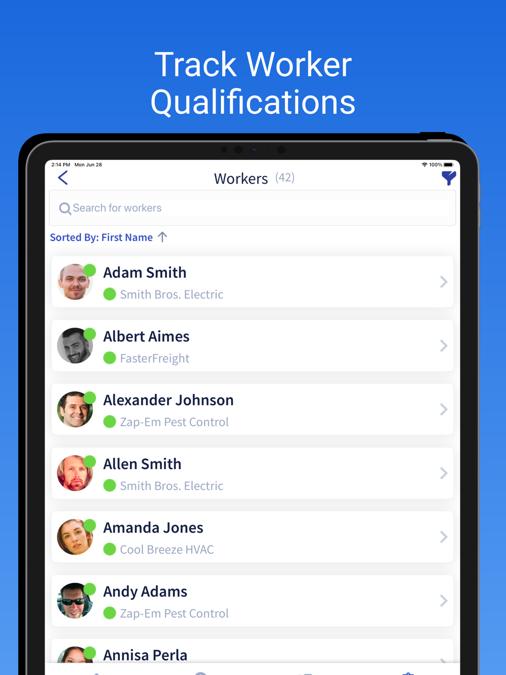 - View each worker’s compliance status