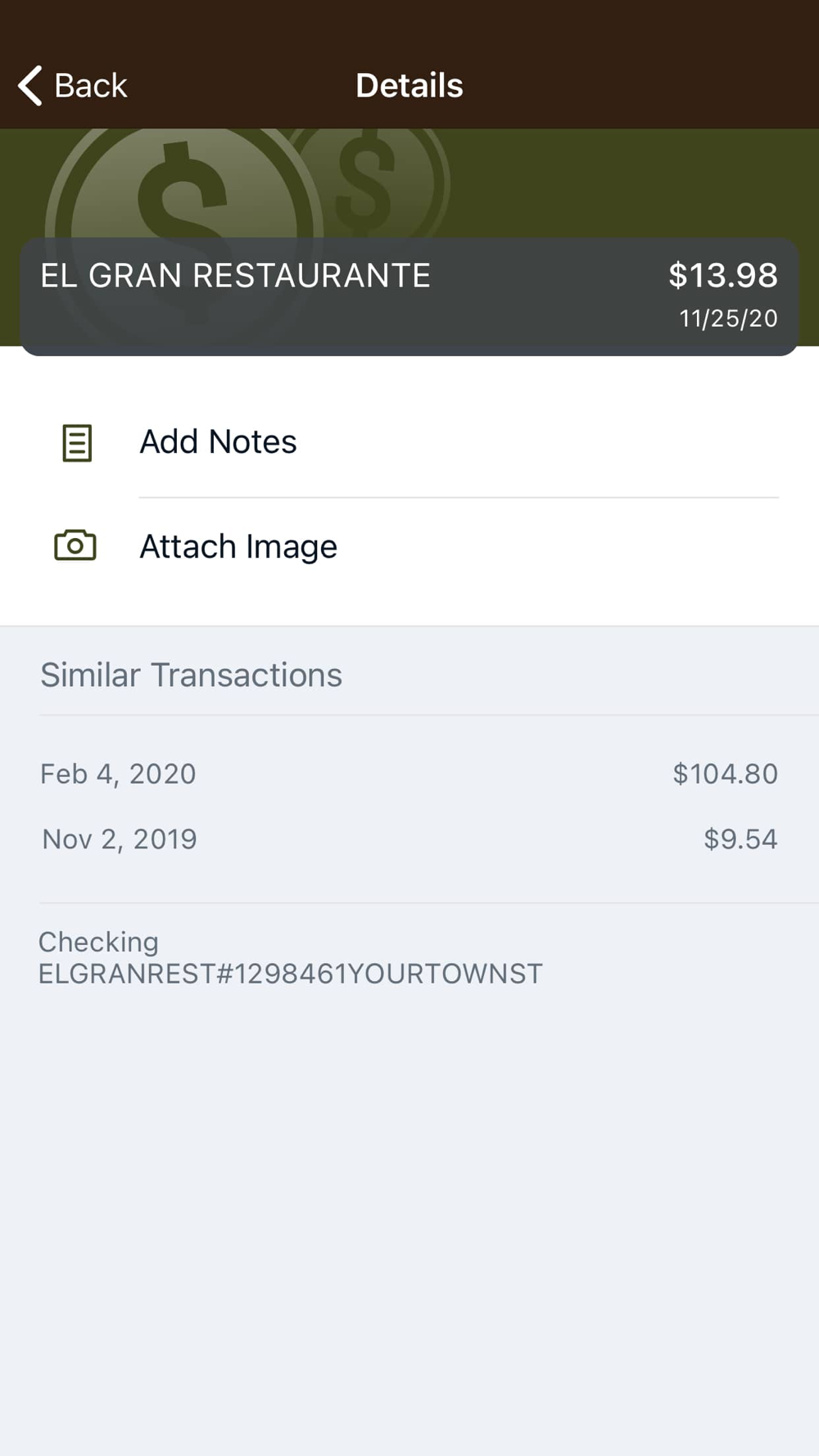 - Keep your transactions organized by allowing you to add tags, notes and photos of receipts and checks.