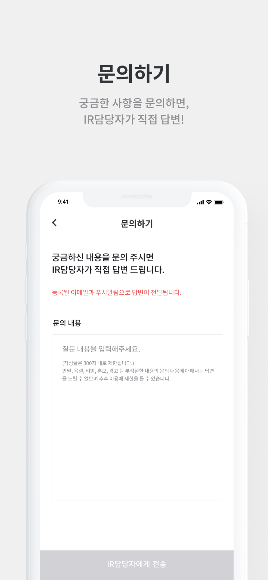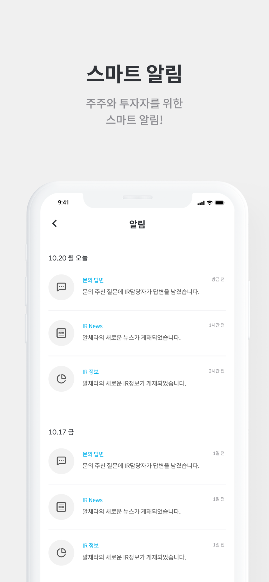 - 최신 IR정보가 업데이트 되면, 실시간으로 알림을 받으실 수 있습니다.