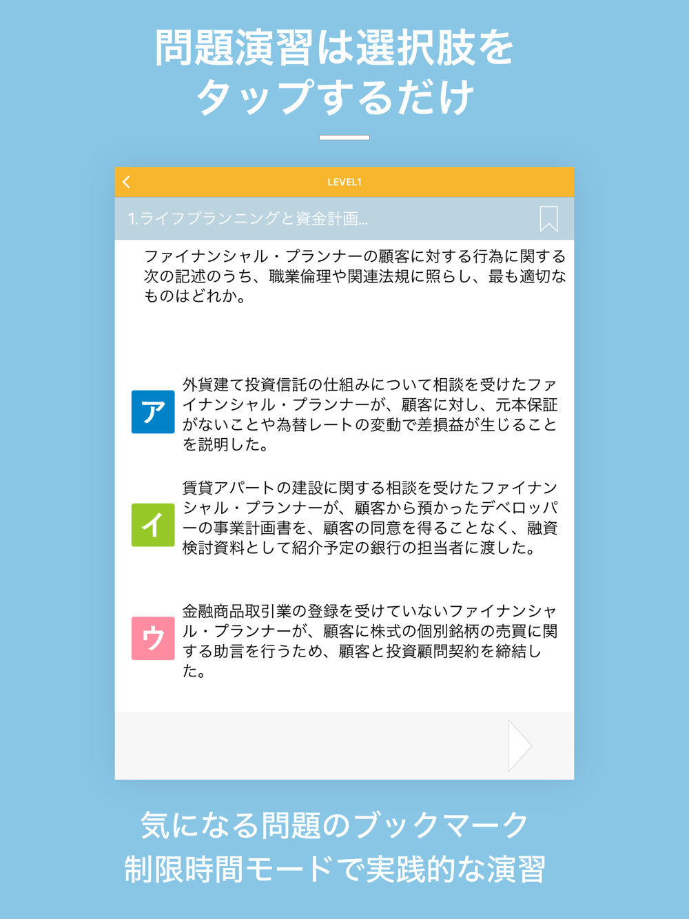 ・チェック問題-しおりボタンを押した問題だけを復習
