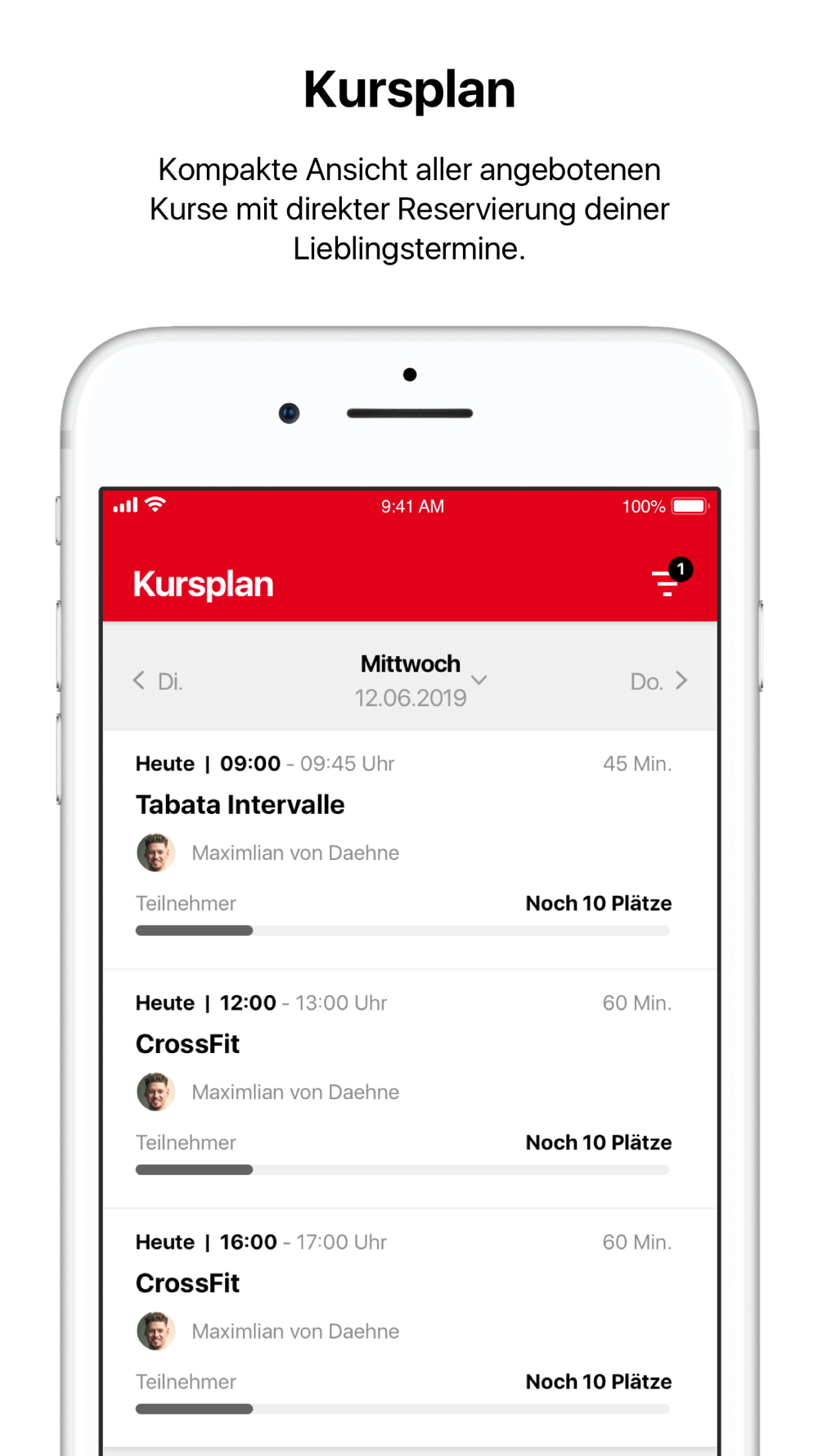 - Buche alle Deine Trainings-Termine wie Trainingsupdates ab sofort mit unserer App