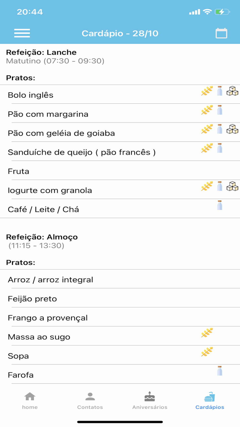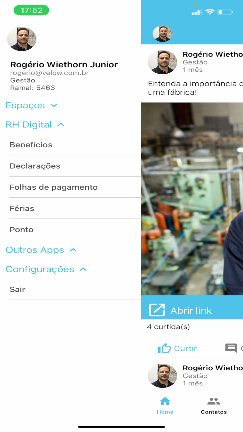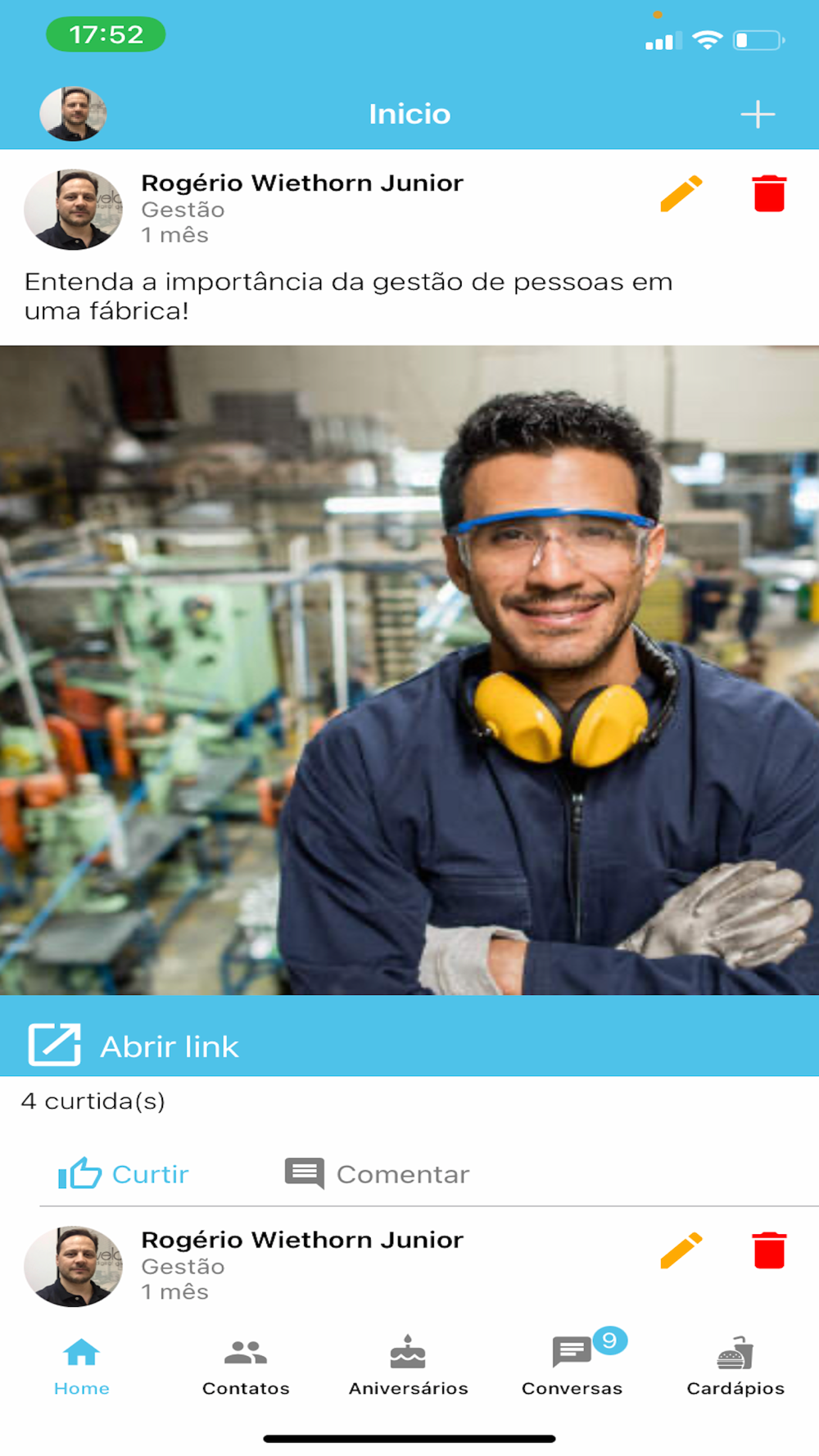 Novidades, benefícios, treinamentos, eventos, aniversariantes, cardápio do dia, solicitações, central de serviços, ufa… tudo isso e muito mais.