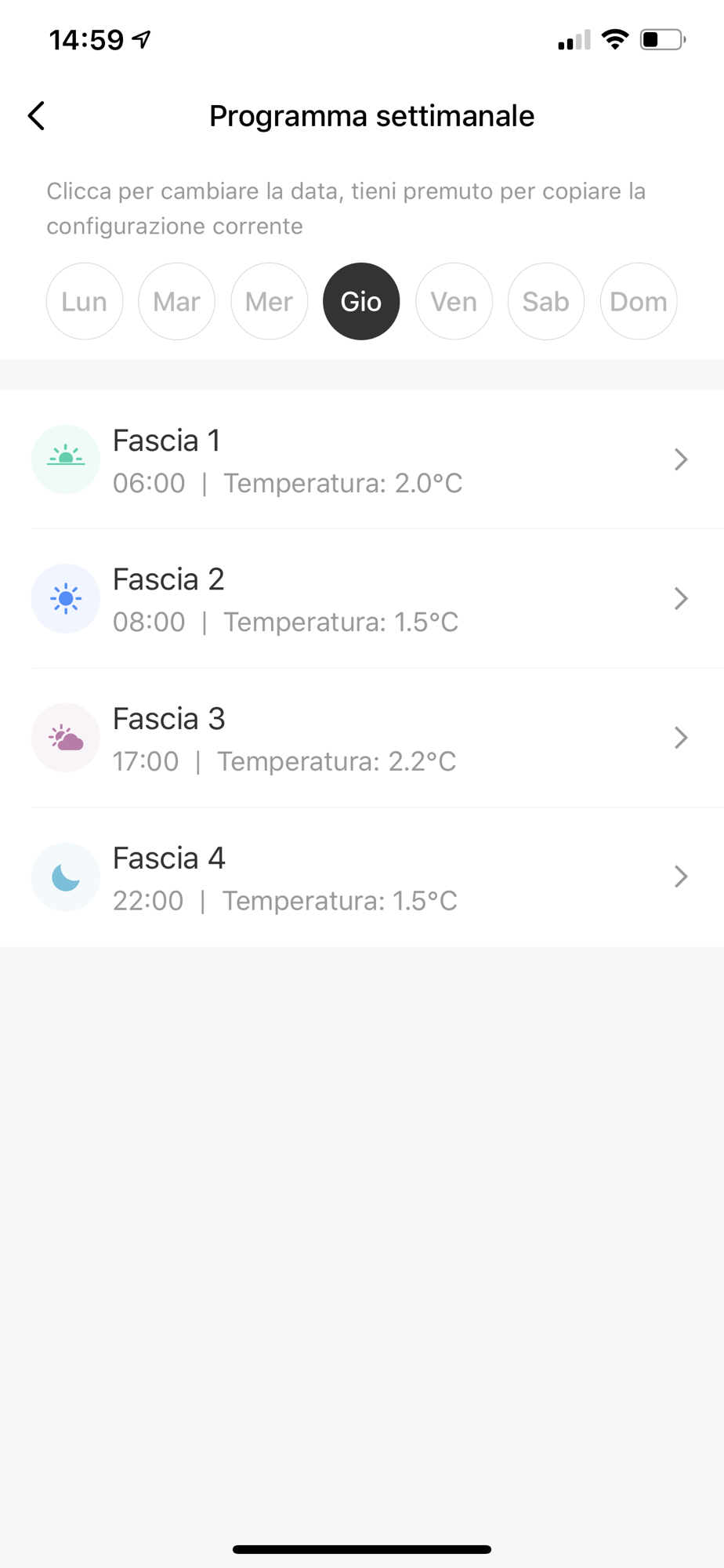 - Visualizzare la temperatura attuale e forzare il set-point manualmente