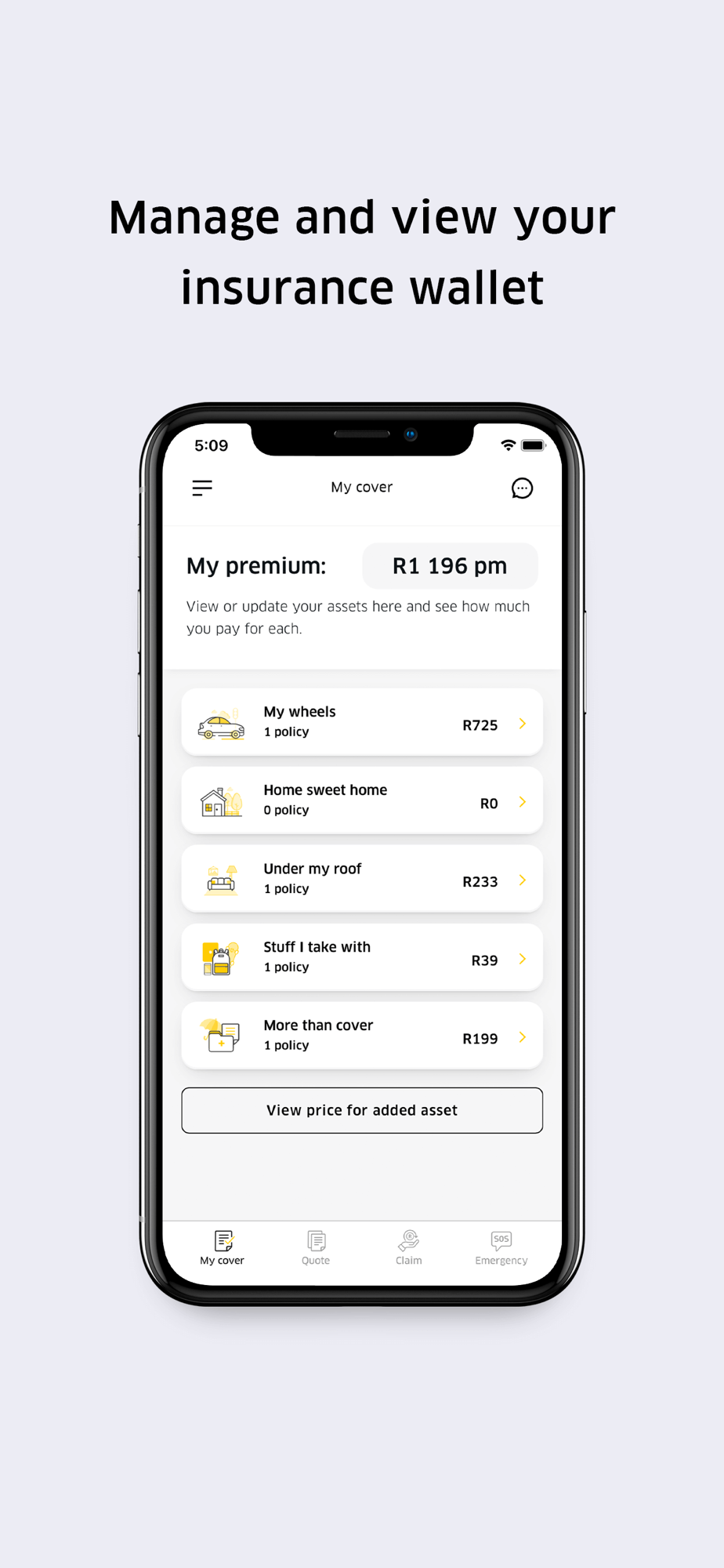 Everything is done in a single app, from getting and accepting quotes, to amending cover and submitting a claim.