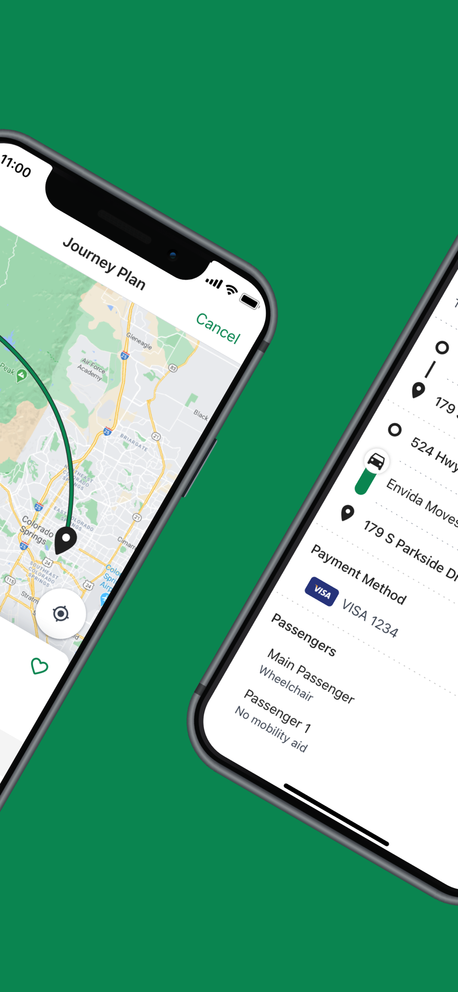 Scheduling trips and paying for rides is easy through the mobile app or by calling Envida at 719.633.4677.