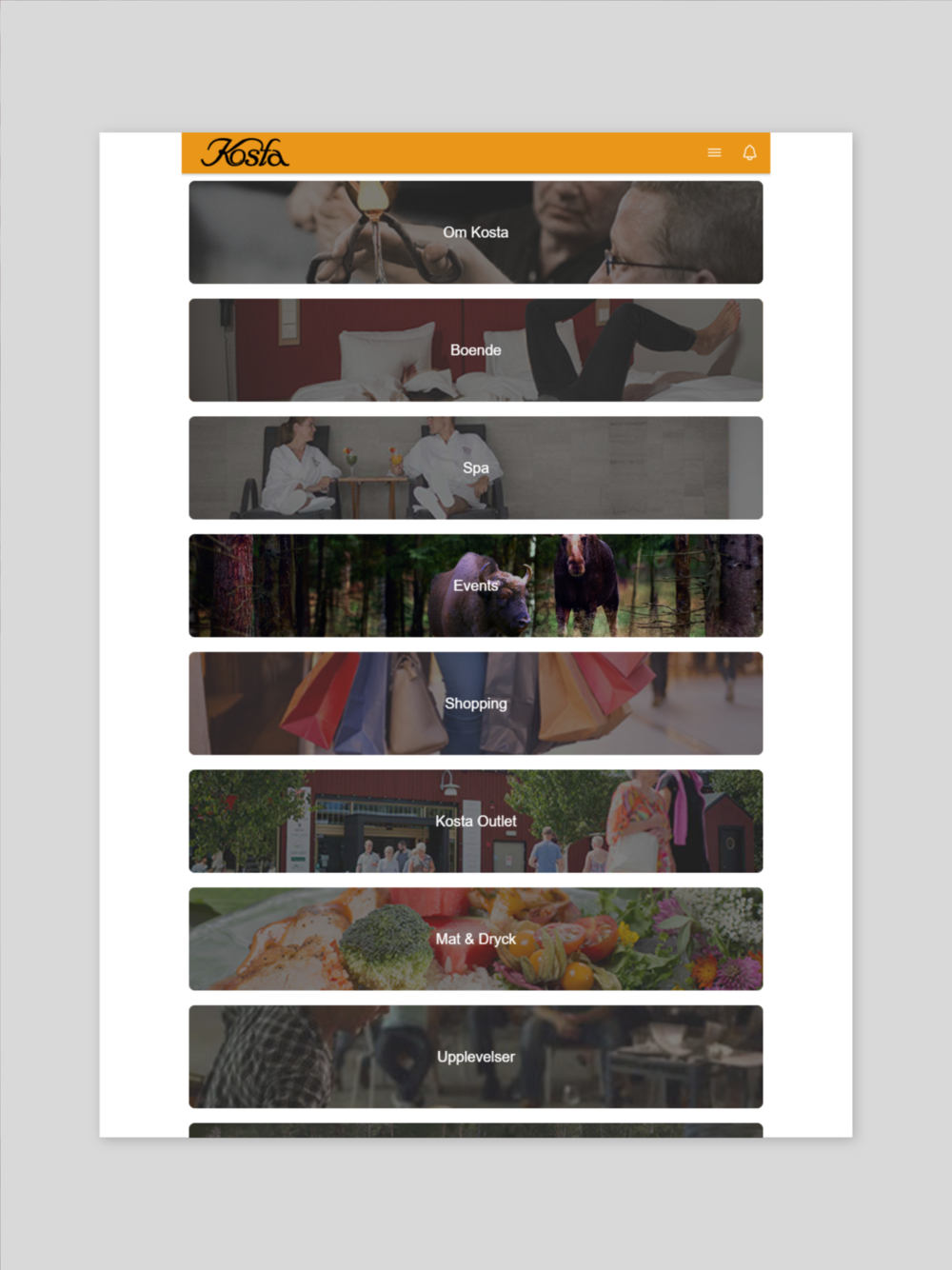 I vår app hittar du som är på besök eller planerar att besöka oss i Kosta all information om de olika upplevelser Kosta erbjuder, allt från shopping och events till glasblåsning hos Kosta Glascenter och safari i Kosta Safaripark. Med hjälp av kartfunktionen i appen kan du enkelt ser var på området du befinner dig samt hitta och läsa mer om våra olika platser att besöka. I appen hittar du även information om våra olika boenden och spa. Du kan på ett enkelt sätt kontakta oss eller boka direkt via appen.