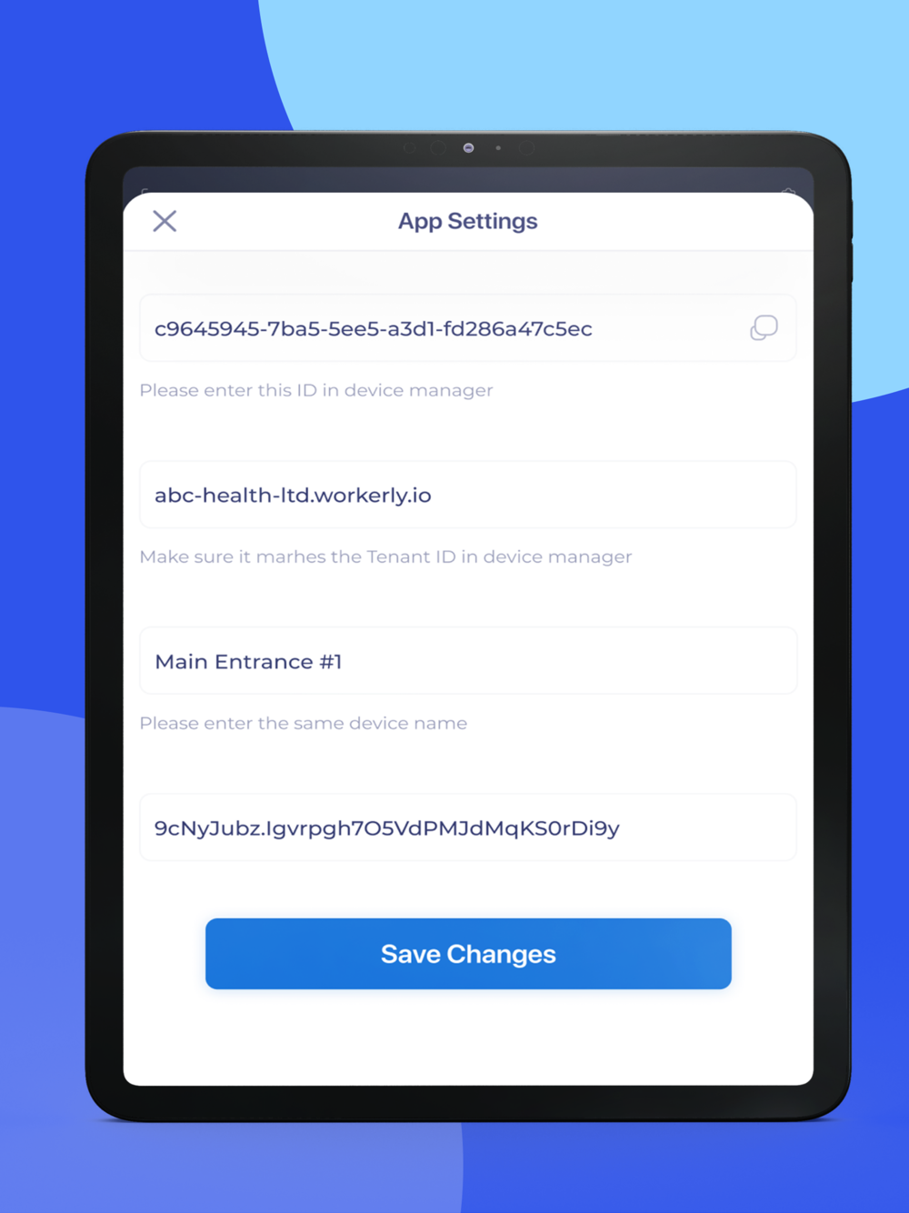 Easy registration of new devices from the Workerly workforce management platform. Set up a new time clock in less than 5 mins.