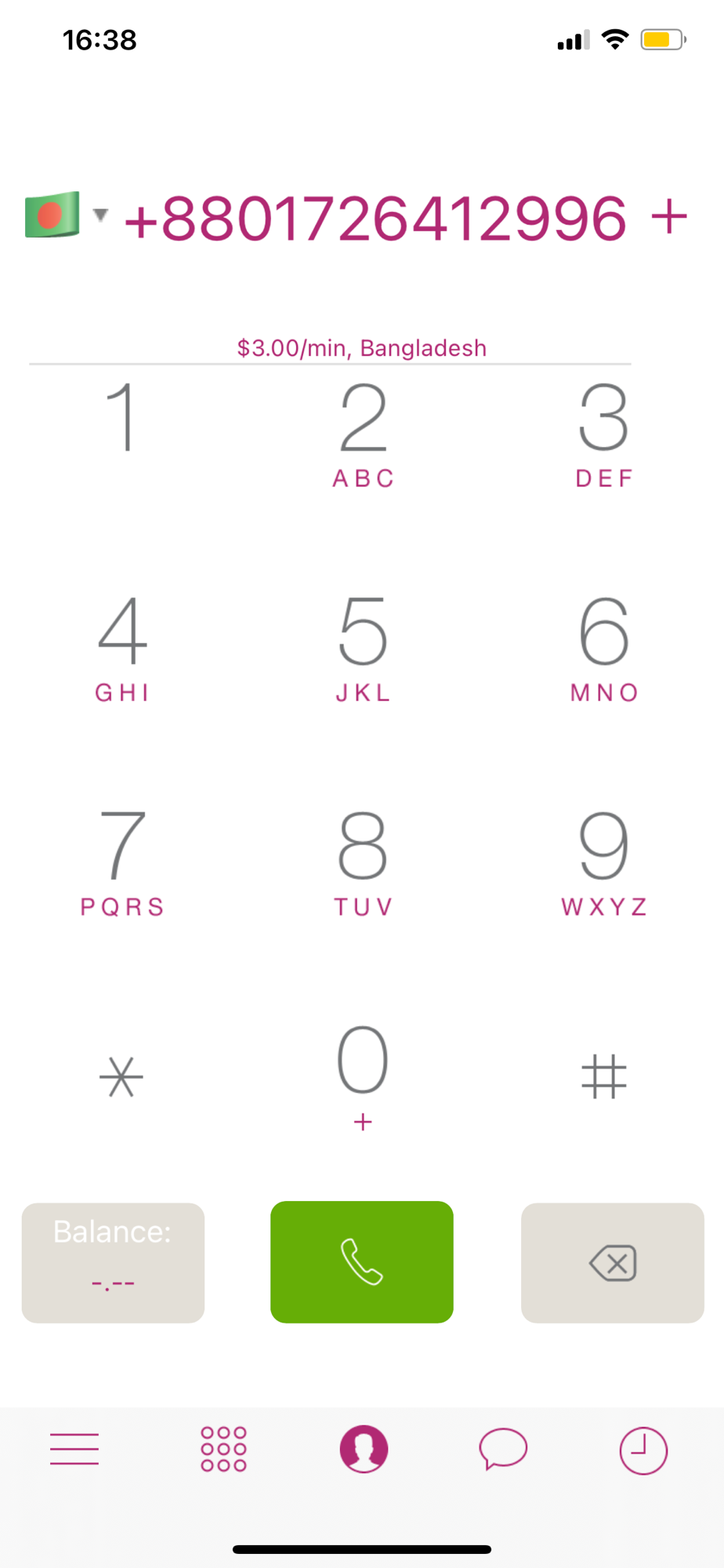 • Remaining balance and destinations cost/min indicator.