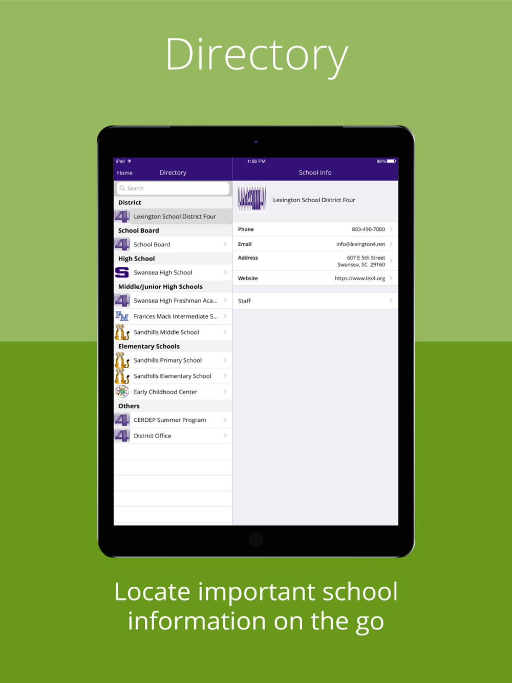The official Lexington School District 4 app gives you a personalized window into what is happening at the district and schools. Get the news and information that you care about and get involved.