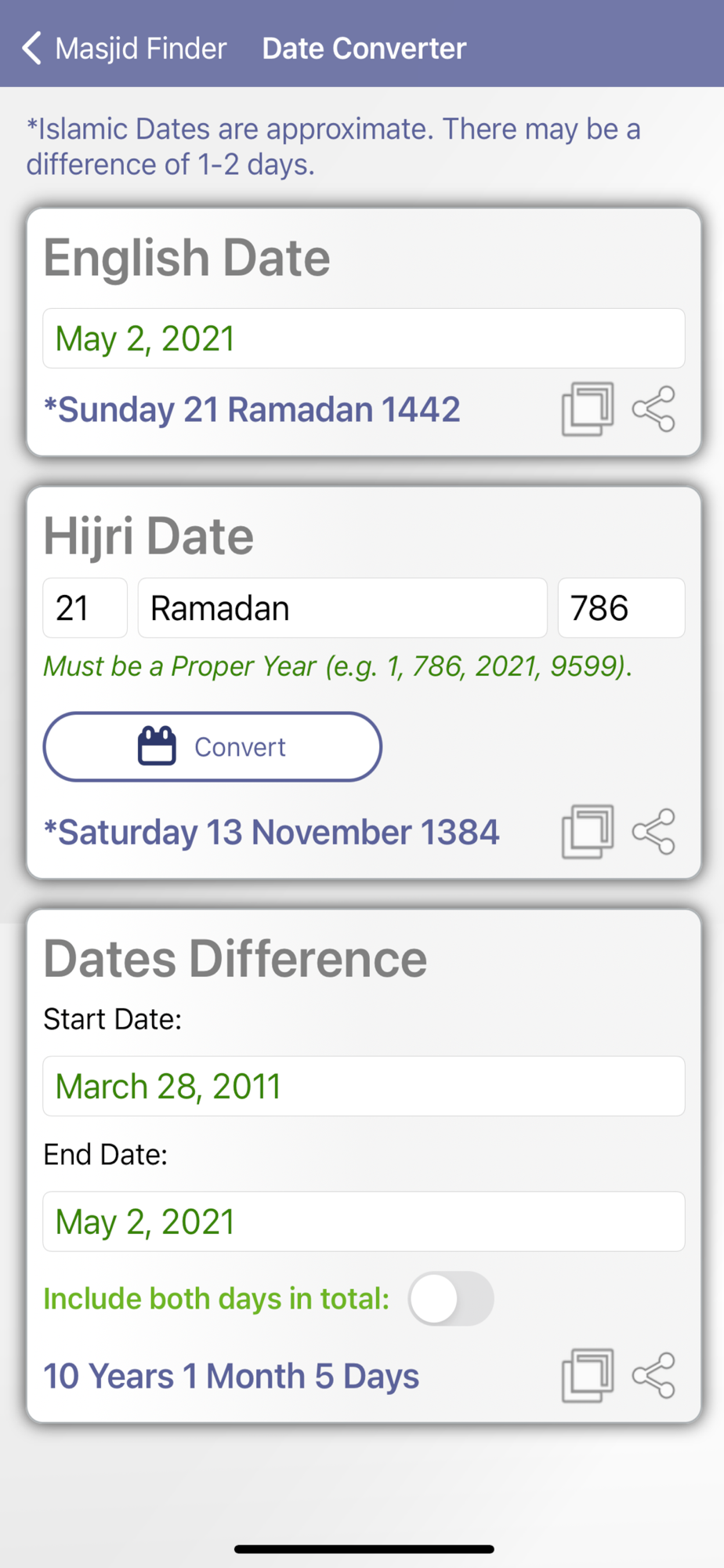 •Prayer Times functionality added (with DST) with multiple cities (and counting).