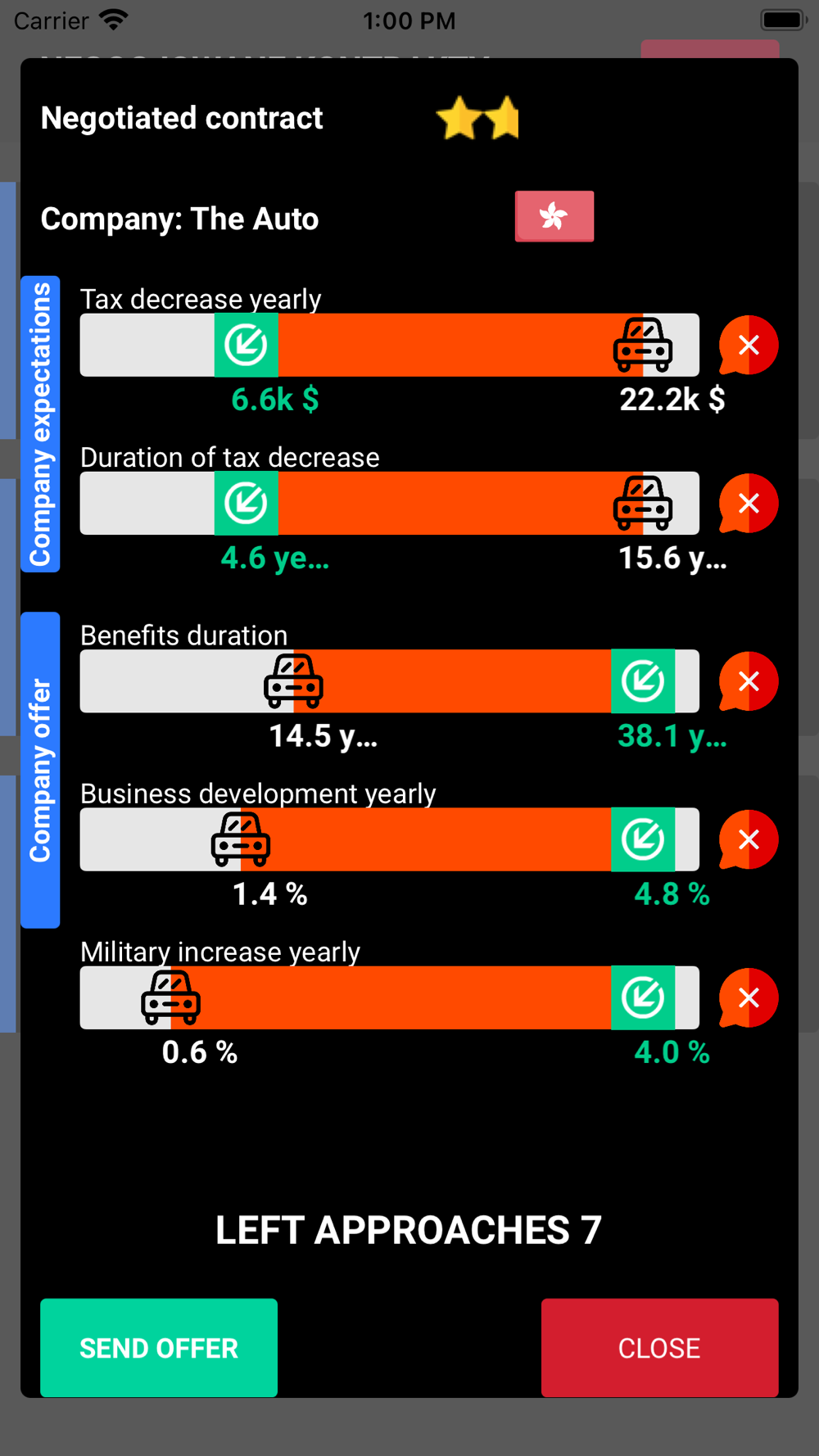 Collect tax money and transfer it to 8 key areas: army, security, education, innovation, business, social programs, public debt, etc. You can build your party's support by investing in the areas citizens expect.