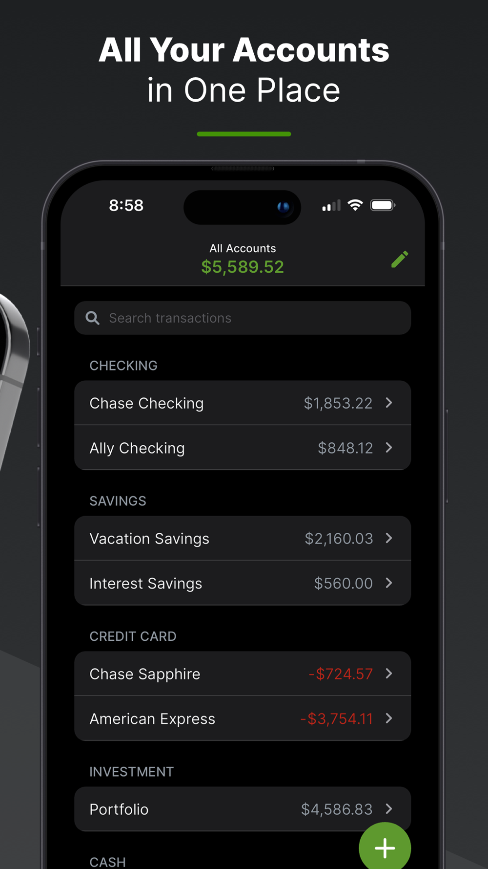 Manage all your savings, checking accounts, credit cards, cash… you get the picture. Keep track of all your money in one place.