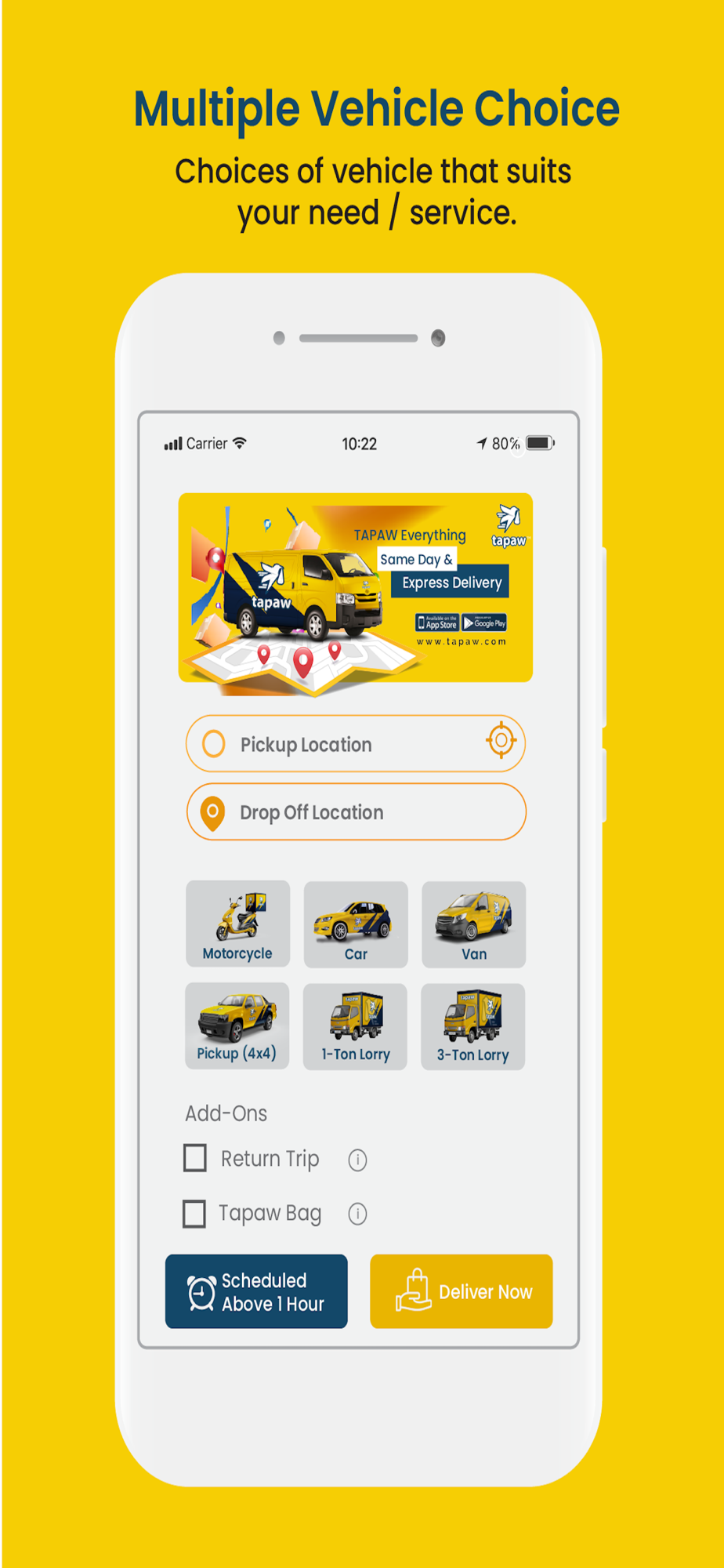 We Tapaw everything for you! Start downloading now and enjoy your hassle-free delivery experience with us!