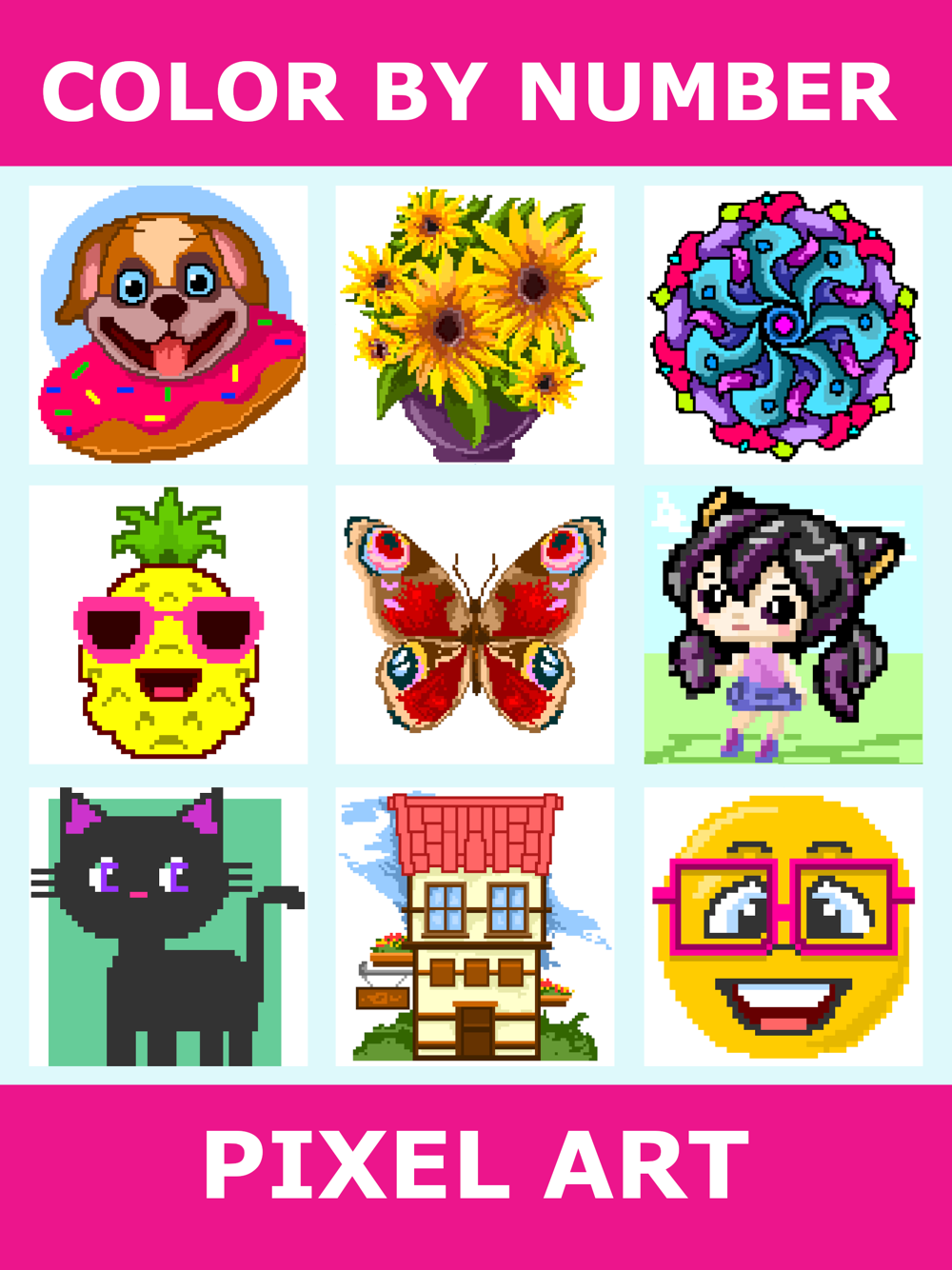 Enjoy New and All Free Color By Number Pixel Coloring Book! There is No subscriptions, No in-app purchases and No any other hidden costs! Just download it now and enjoy tons of amazing Pixel Art Coloring pages over the most popular themes like: