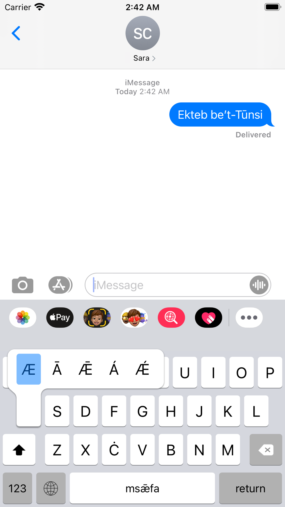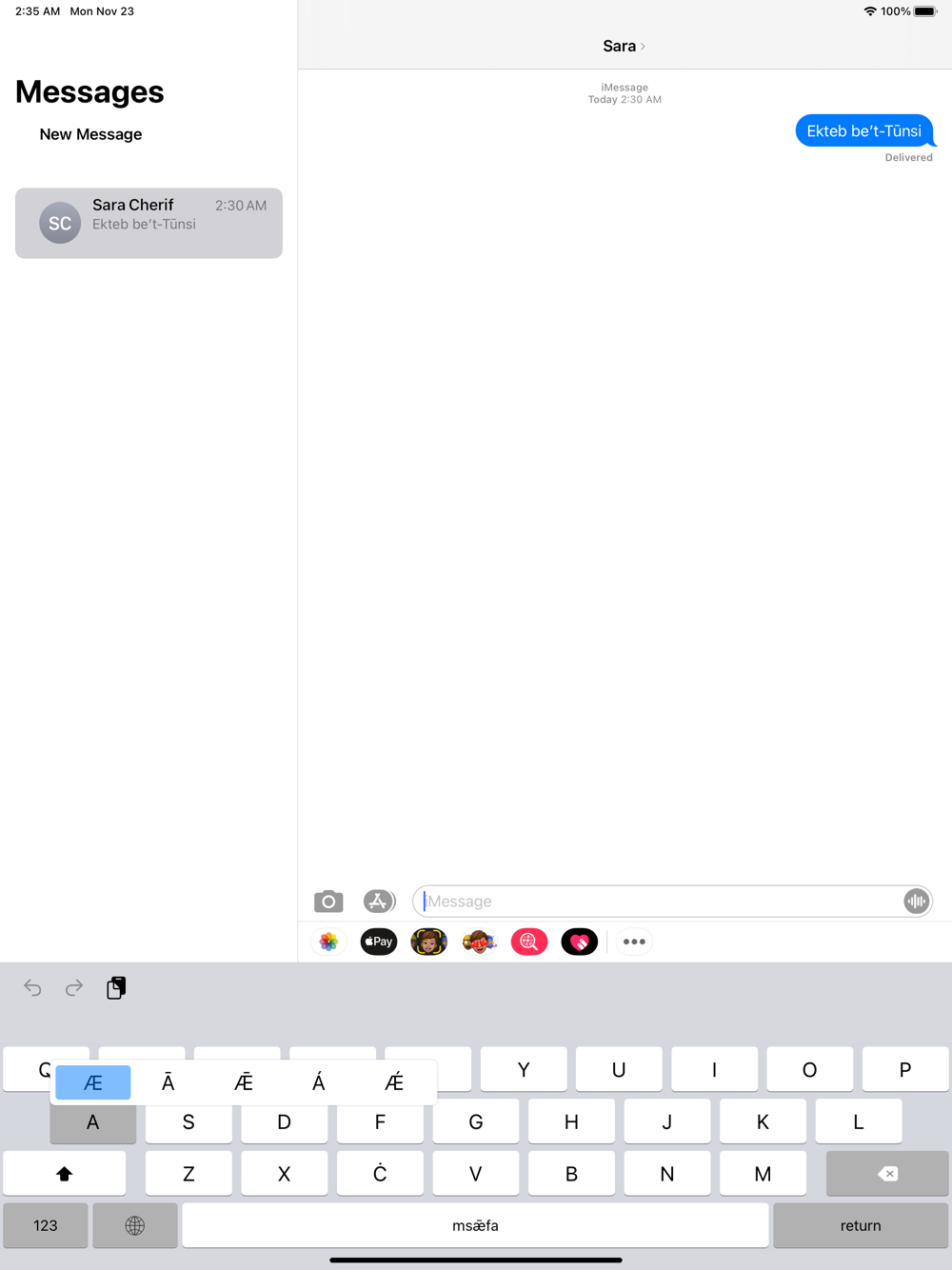 No more Arabizi! You no longer have to mix letters with numbers or use digraphs to write in Tunisian. You can finally use all standard Unicode Latin letters for a much smoother writing and reading experience. You can use this keyboard in all applications including Messages, WhatsApp, Facebook, and more!