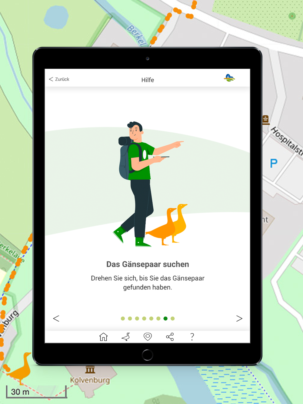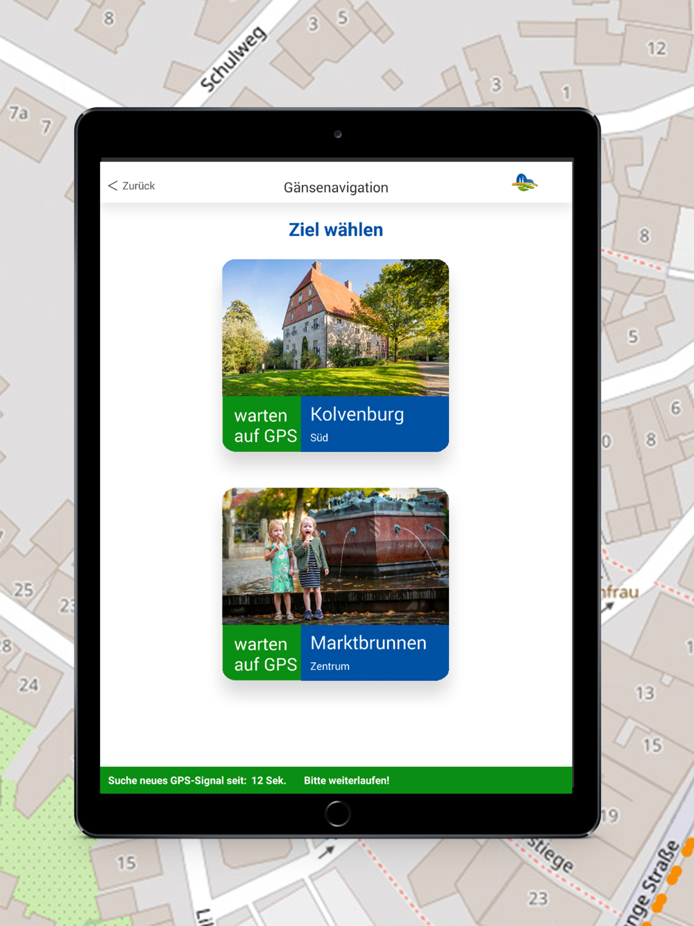 Sollten Sie die Gänsenavigation nicht nutzen können, stehen Ihnen aber die Informationen zu den Stationen und die 360°-Aufnahmen zur Verfügung. Sie können den Rundgang also dennoch "auf eigene Faust" unternehmen. Wir empfehlen Ihnen dann, als zusätzliche Info für den Routenverlauf den Flyer zur App herunterzuladen: www.billerbeck-muensterland.de