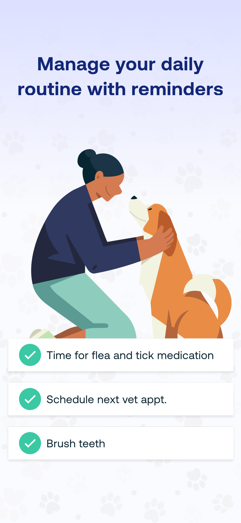 Check-in on your daily routine and set reminders for the things that are important to you, like when it’s time for their medication or simply time for walkies!