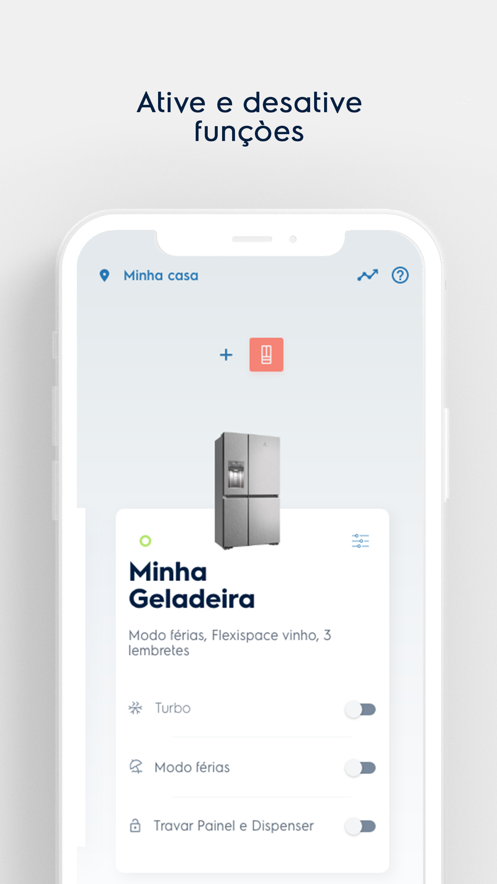 Trave ou destrave o painel da sua geladeira pelo aplicativo e garanta a segurança das configurações de temperatura.