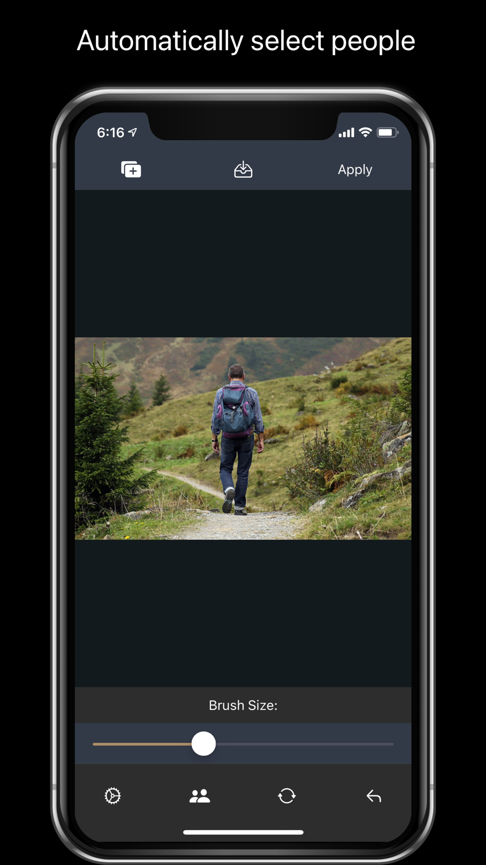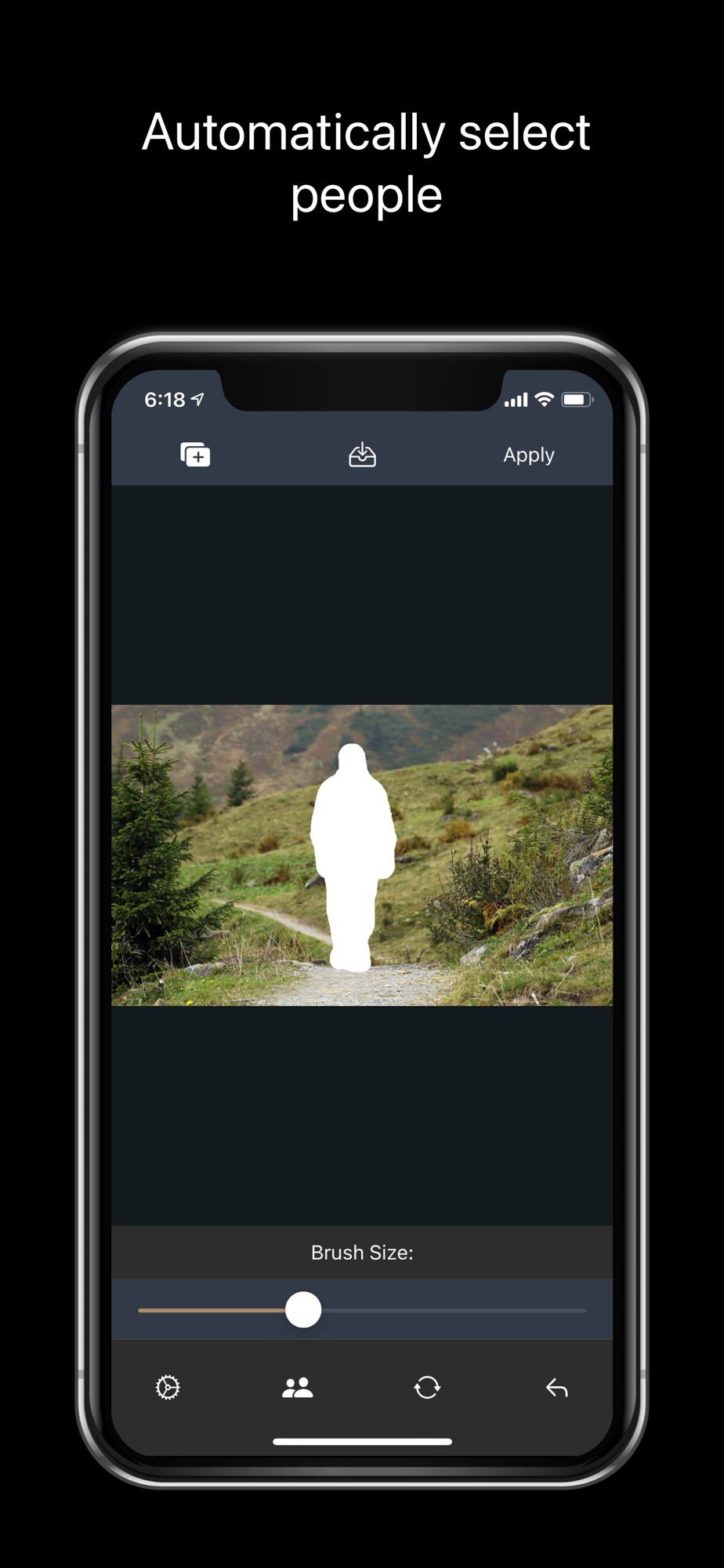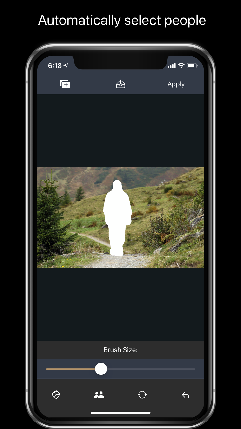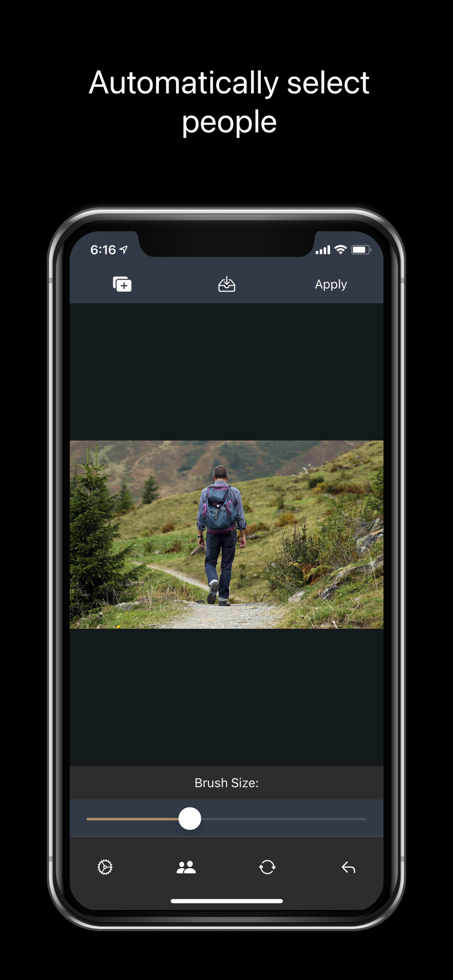 Thanks to the advanced Artificial Intelligence that HyperPaint uses, you will be able to eliminate people or objects that are getting in the way. This can be done in 2 simple steps: select what you want to remove, and then press Apply!