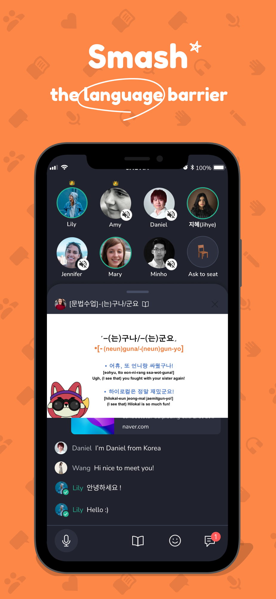 Learning a language is painless when it’s fun. The app helps you grow your social connections so you share one-of-a-kind moments with fascinating new friends. Talk about K-pop with a Korean, Italian food with an Italian, or baseball with an American.