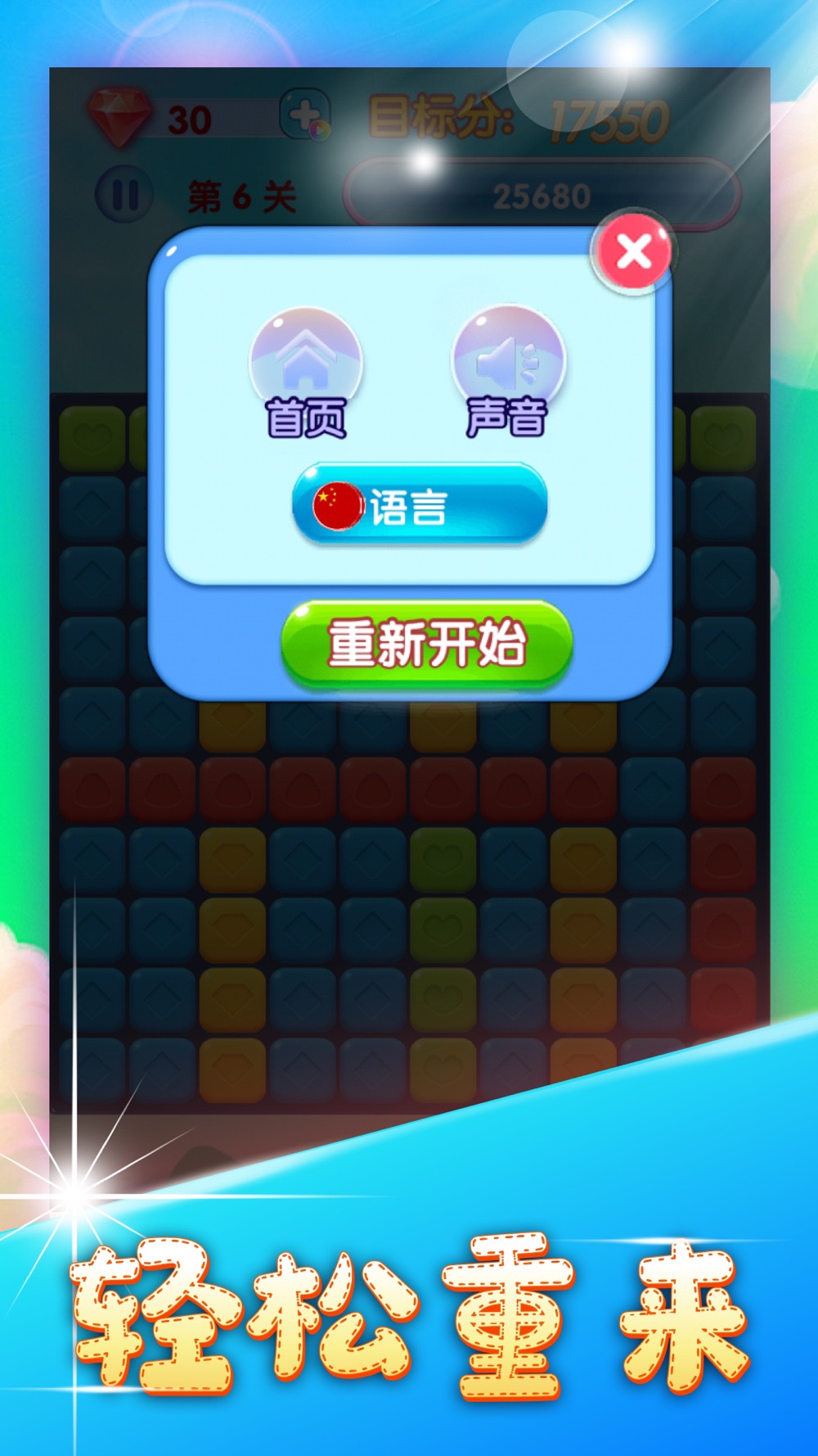 《爱上消星星》是一款经典的休闲游戏,我们会看到更加高清的游戏画面、美妙的音效,《爱上消星星》玩法:单指操控,两个及以上同色星星方块可以消除;无时间限制,达到分数即可过关。未达到分数可利用道具帮助通关。