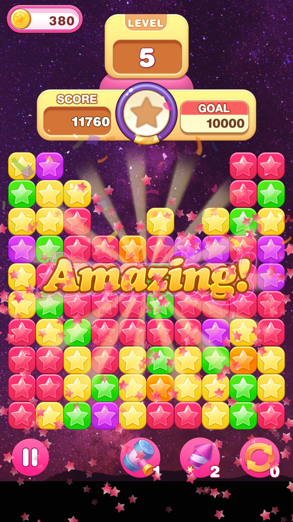 Pop Star Legend is a funny puzzle game. Click to eliminate colored stars and try to reach the highest score!