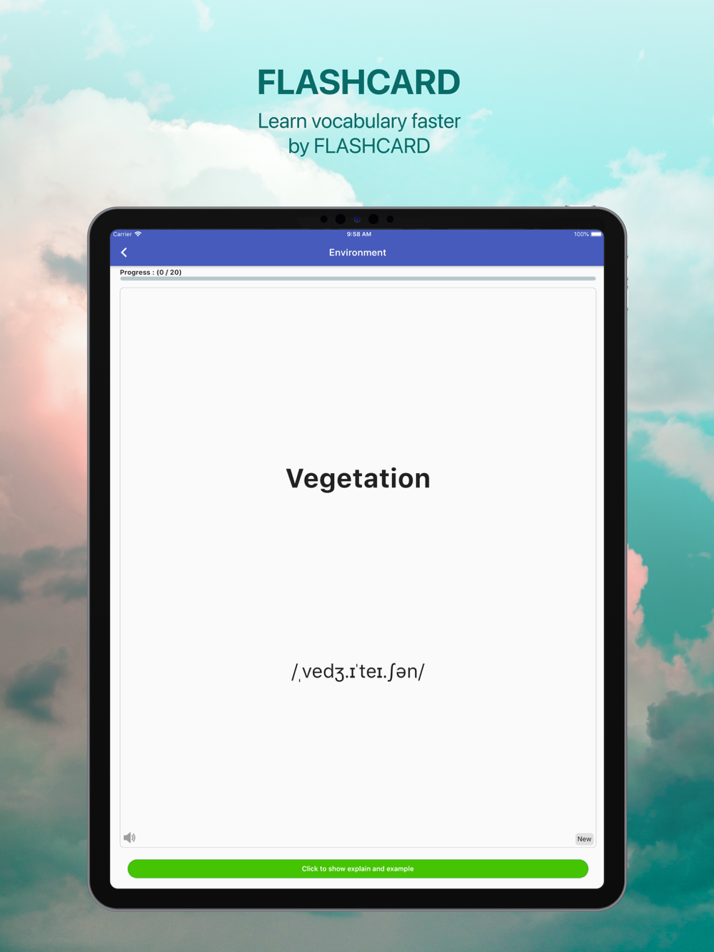 • FREE access to all of the flashcards, which helps you to overcome easily the difficulty of remembering numerous vocabularies.